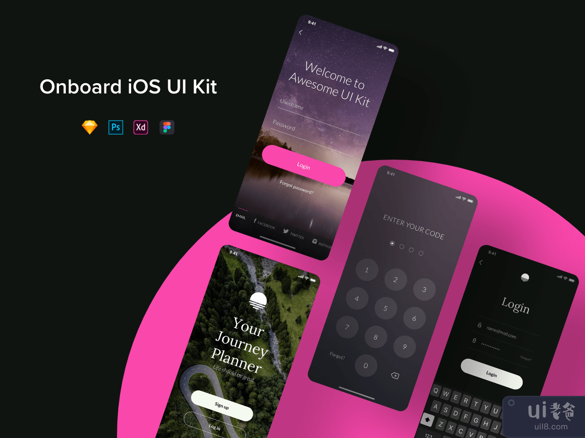 Onboard iOS UI Kit (Adobe XD, Sketch, Photoshop & Figma)
