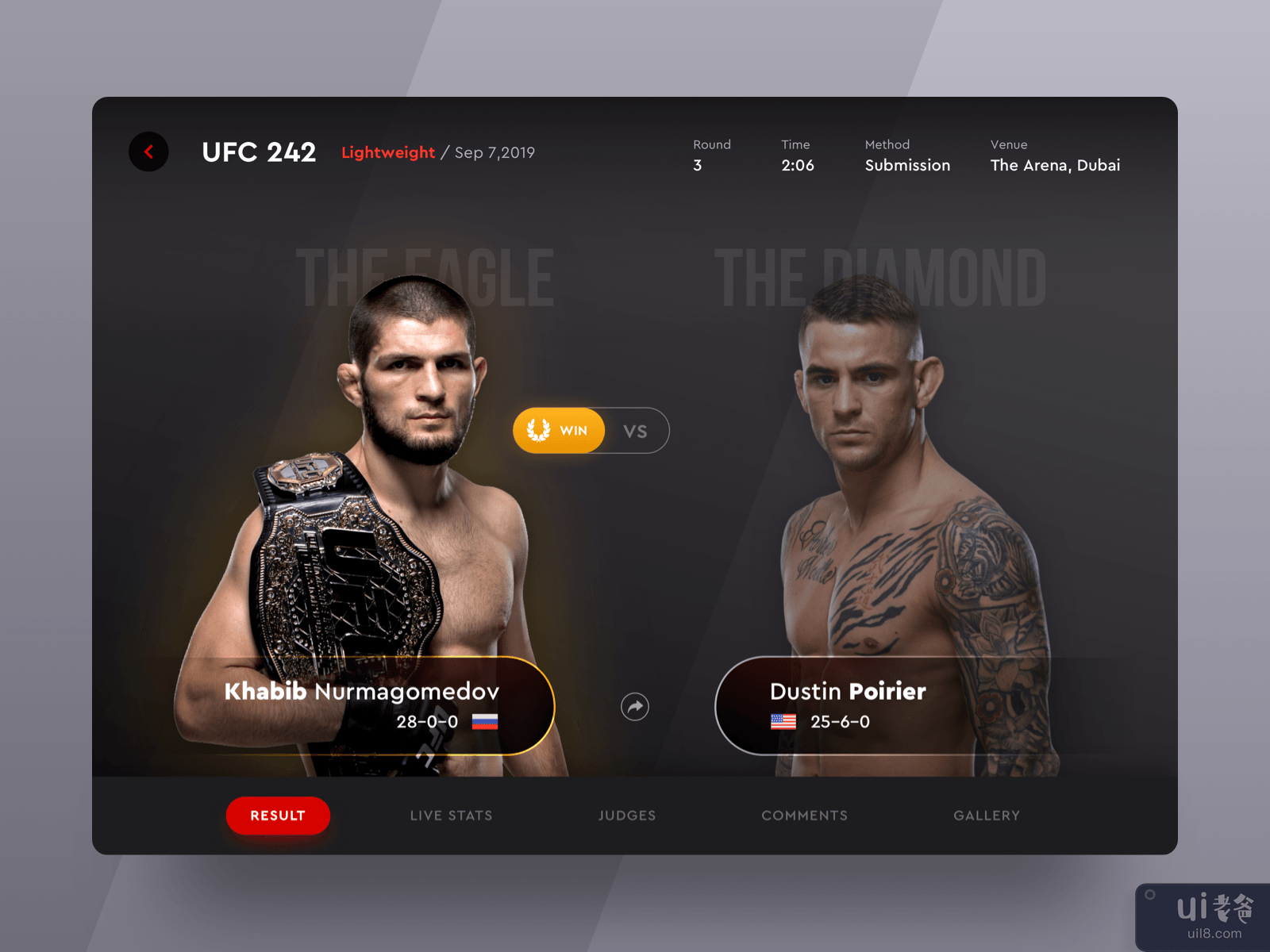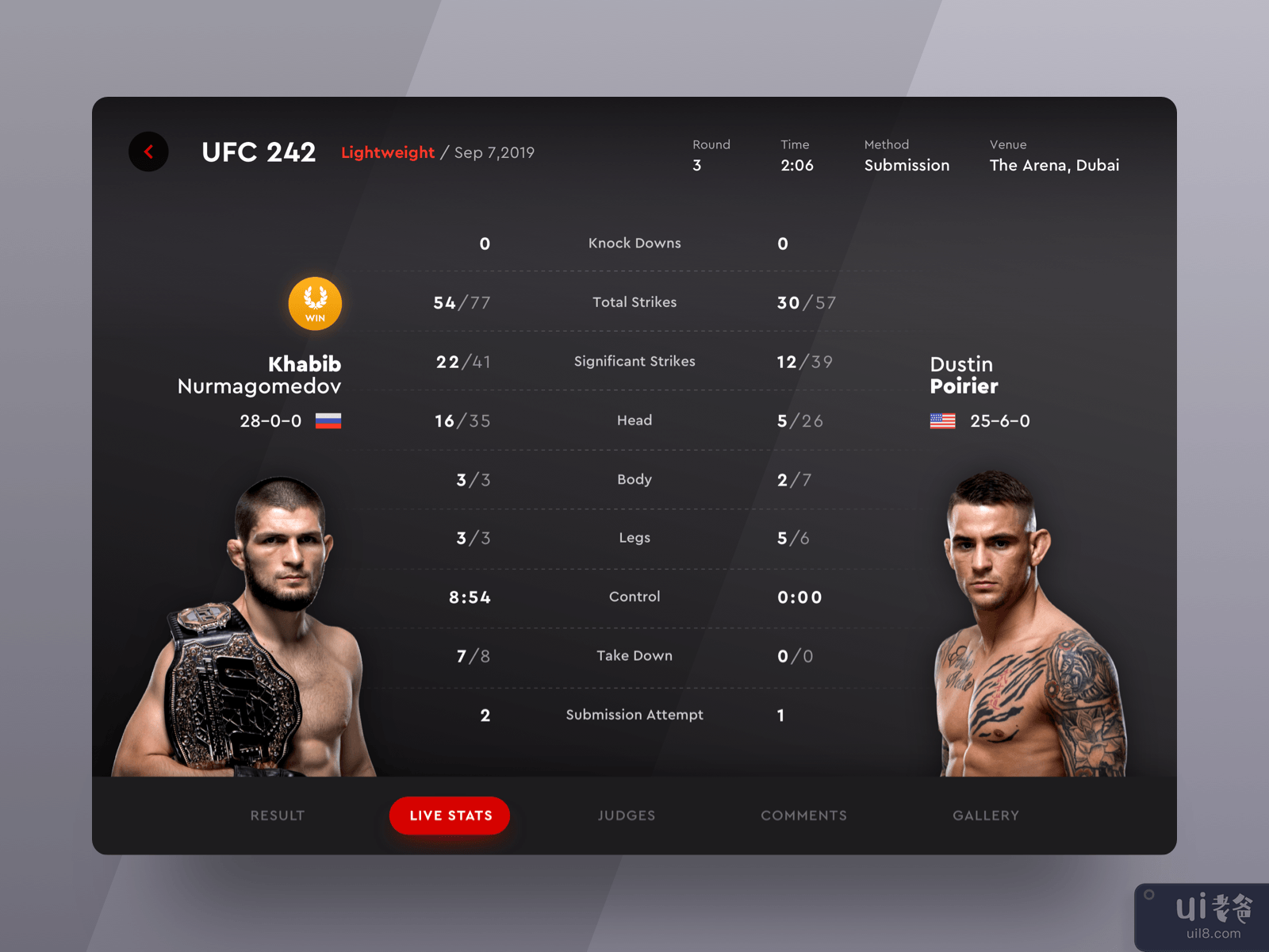 iPad 应用程序上的 UFC 242 战斗结果(UFC 242 Fight Result on iPad App)