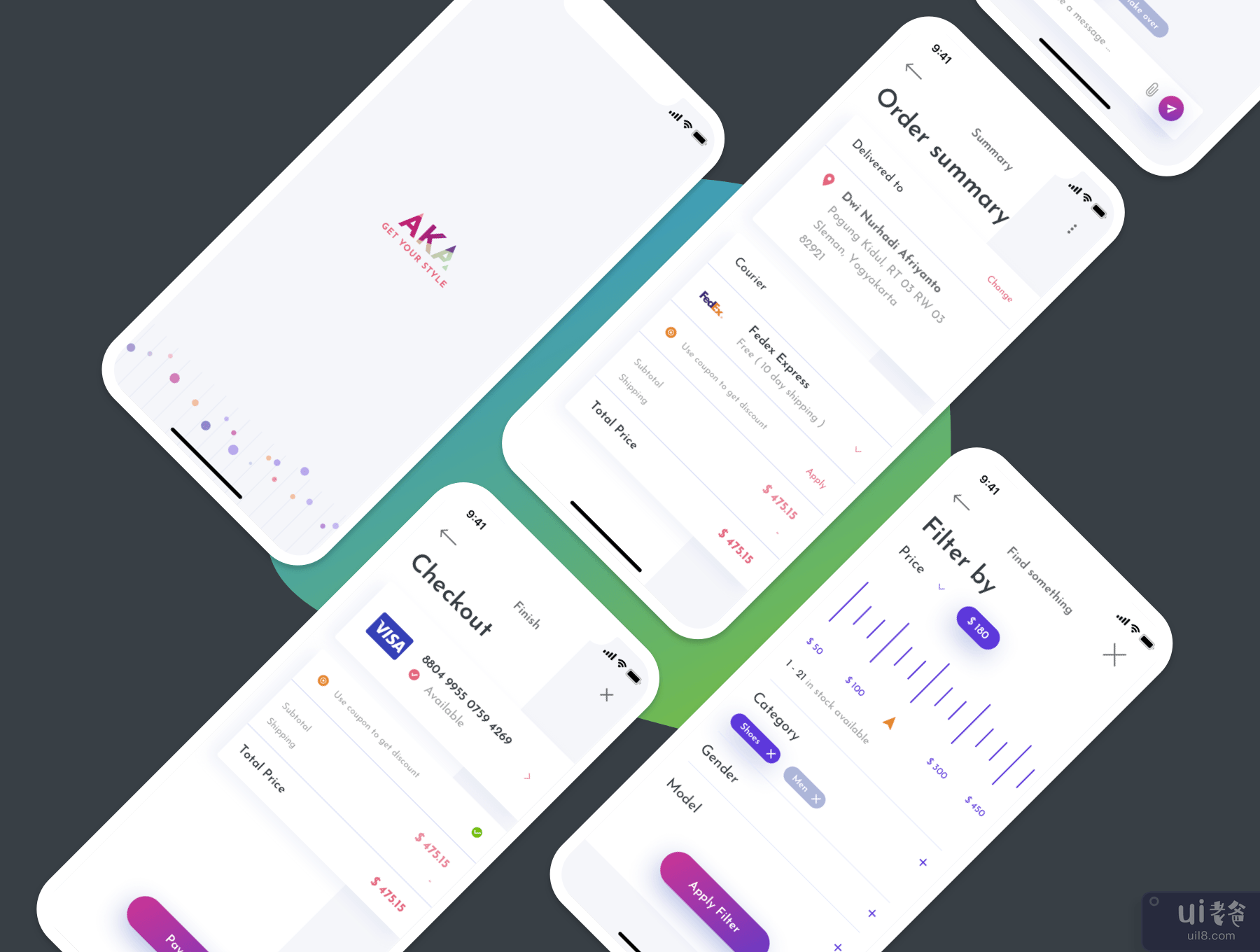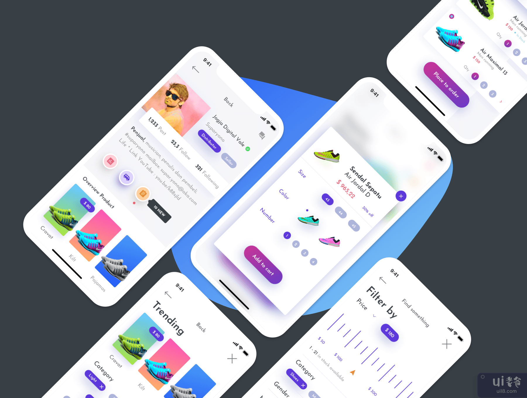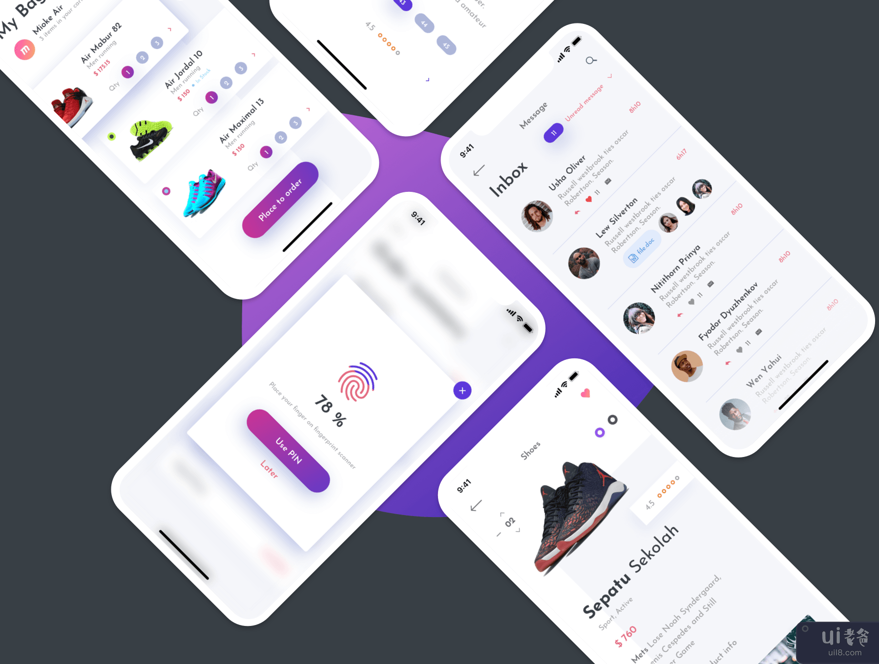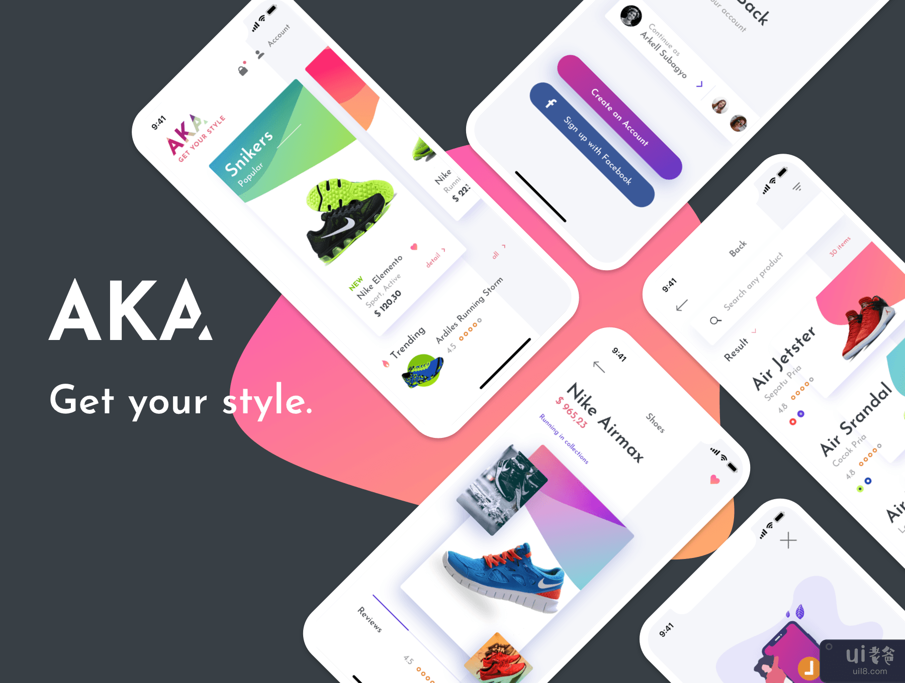 AKA UI Kit 是电子商务商店鞋应用。您可以在家里或任何地方每天使用您的应用程序一键订购。我们通过清晰的界面移动应用程序提供简单的订购和结帐步骤。它包括 36 多个屏幕组织和 6 类设计,具有高品质和现代风格。基于 iphone x HIG 的模板以获得更好的 ui &用户体验。图标和使用的插图仅用于预览目的,虽然不包括在内,但它们可以免费使用 - zip 文件中包含的链接功能