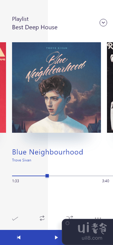 当前位置: 首页UI正文 音乐 UI 套件(Music UI Kit) UI 3年前 0 4.3K 18 收藏 -中文- 音乐 UI 套件 -英文- Music UI Kit 声明:本站所有文章,如无特殊说明或标注,均为本站原创发布。任何个人或组织,在未征得本站同意时,禁止复制、盗用、采集、发布本站内容到任何网站、书籍等各类媒体平台。如若本站内容侵犯了原著者的合法权益,可联系我们进行处理。cikkikit RuhiDesigner青铜用户 收藏 海报 链接