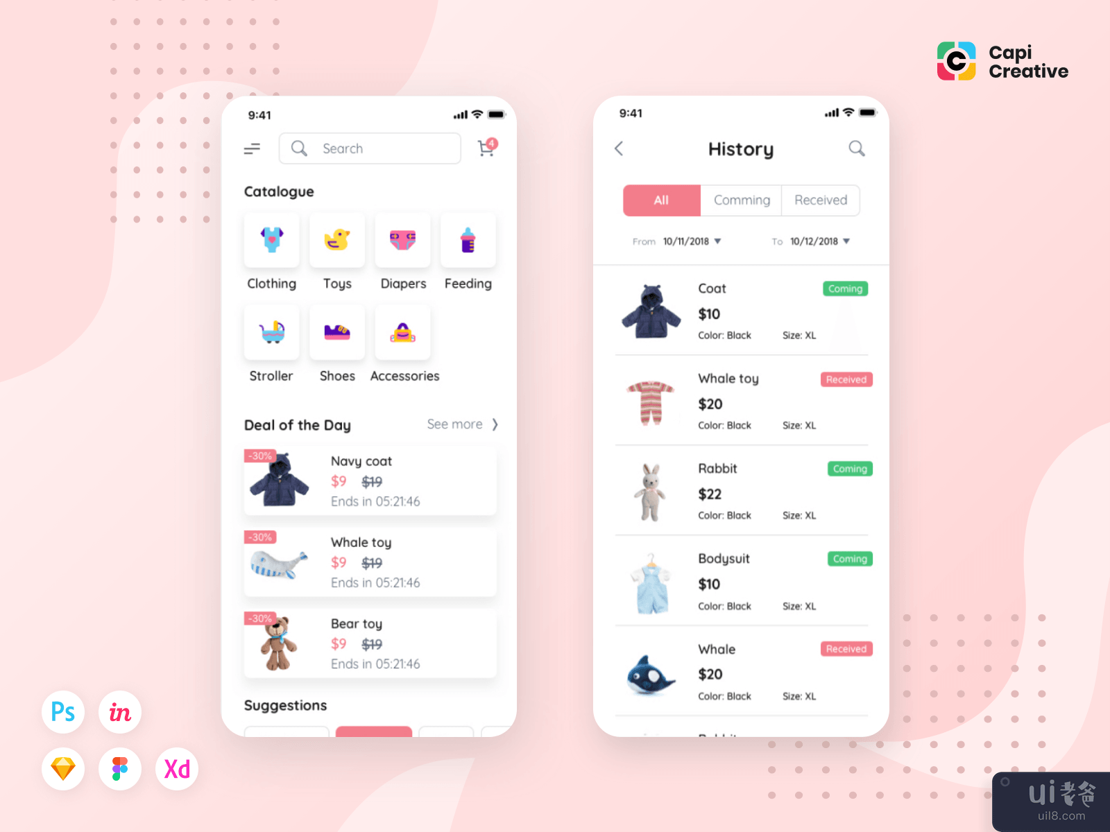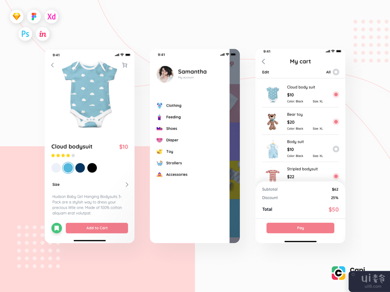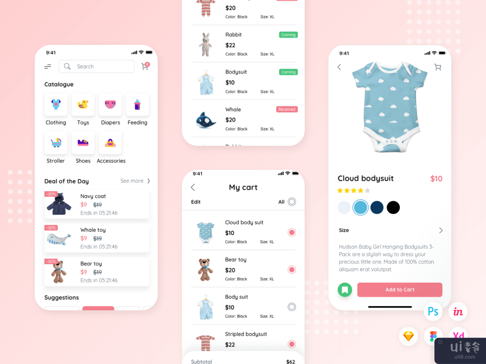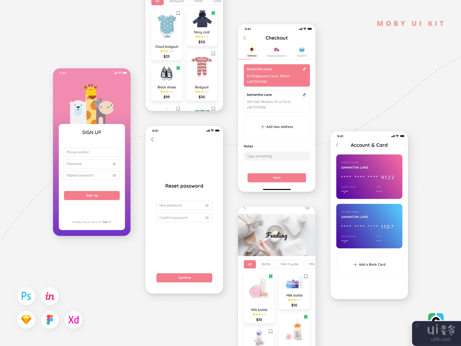 Moby is a UI Kit about E commerce for Baby or Kids. It's beautiful UI made with precision while maintaining modem design patterns.