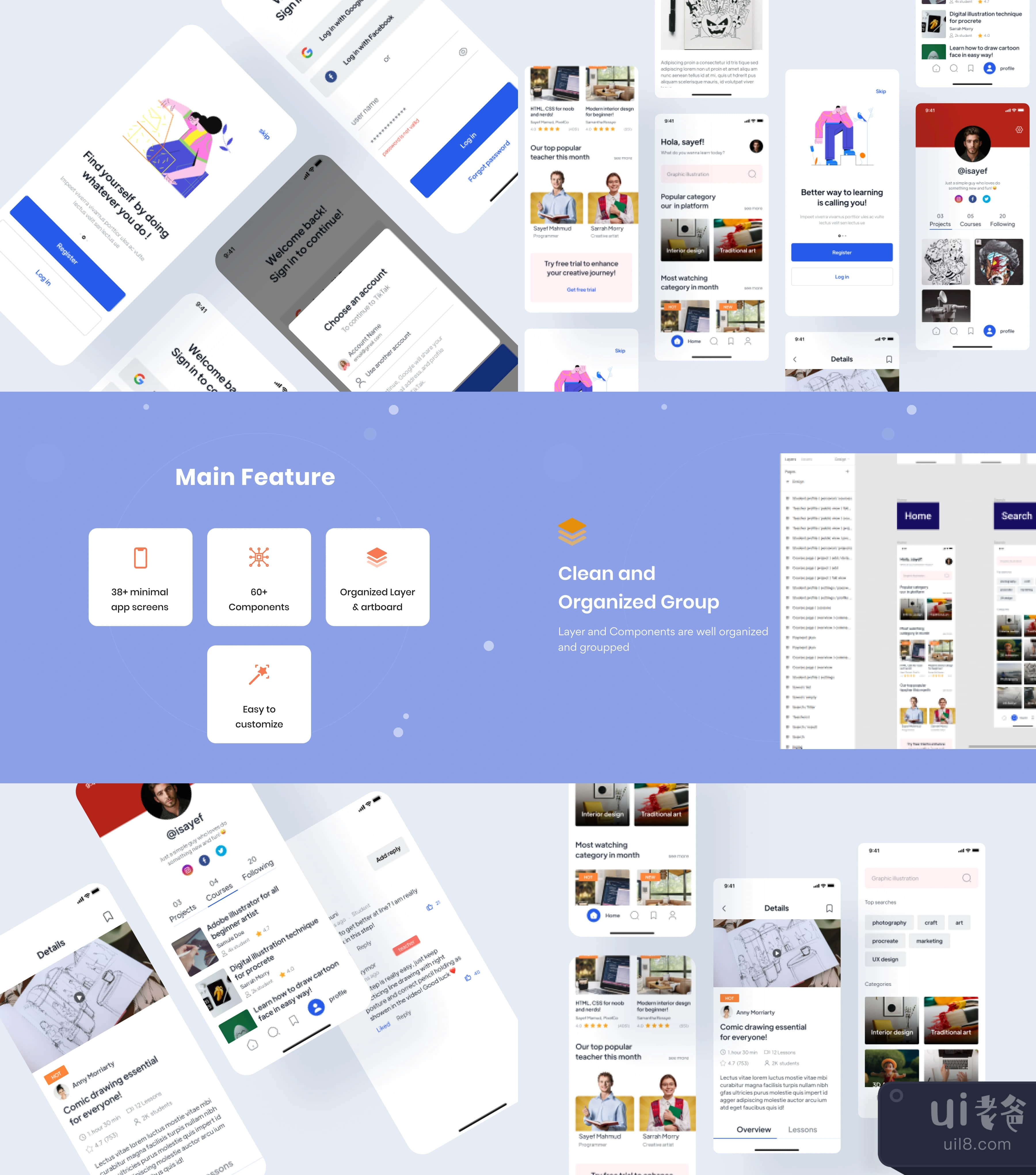 当前位置: 首页UI正文 EduCo电子学习应用UI套件 (EduCo e-learning app UI kit) UI 4年前 0 28.8K 3 收藏 声明:本站所有文章,如无特殊说明或标注,均为本站原创发布。任何个人或组织,在未征得本站同意时,禁止复制、盗用、采集、发布本站内容到任何网站、书籍等各类媒体平台。如若本站内容侵犯了原著者的合法权益,可联系我们进行处理。FigmaUI Kits教育 Education DrewEndly青铜用户 收藏 海报 链接