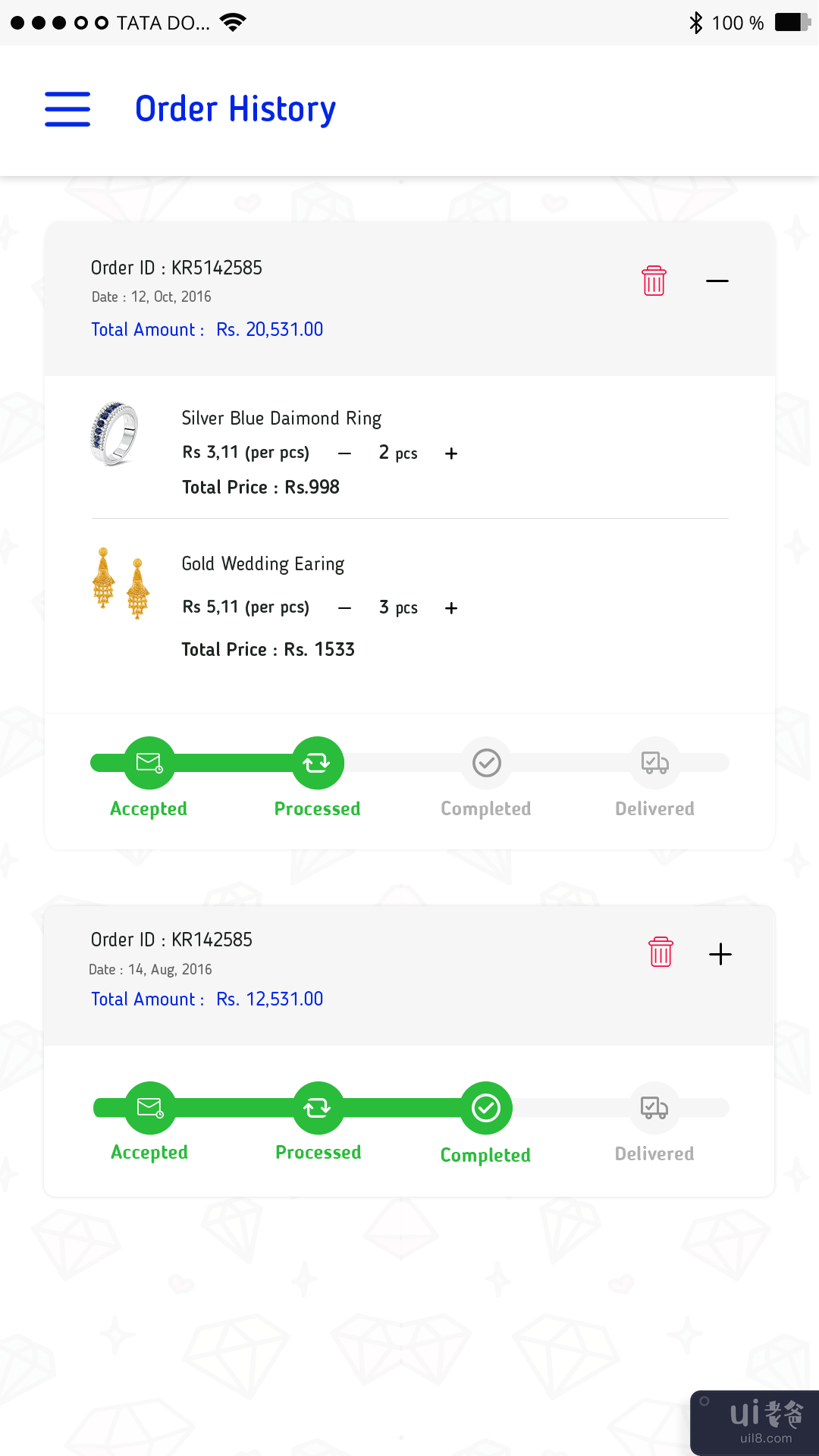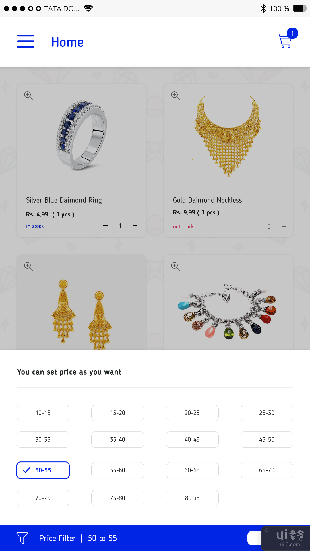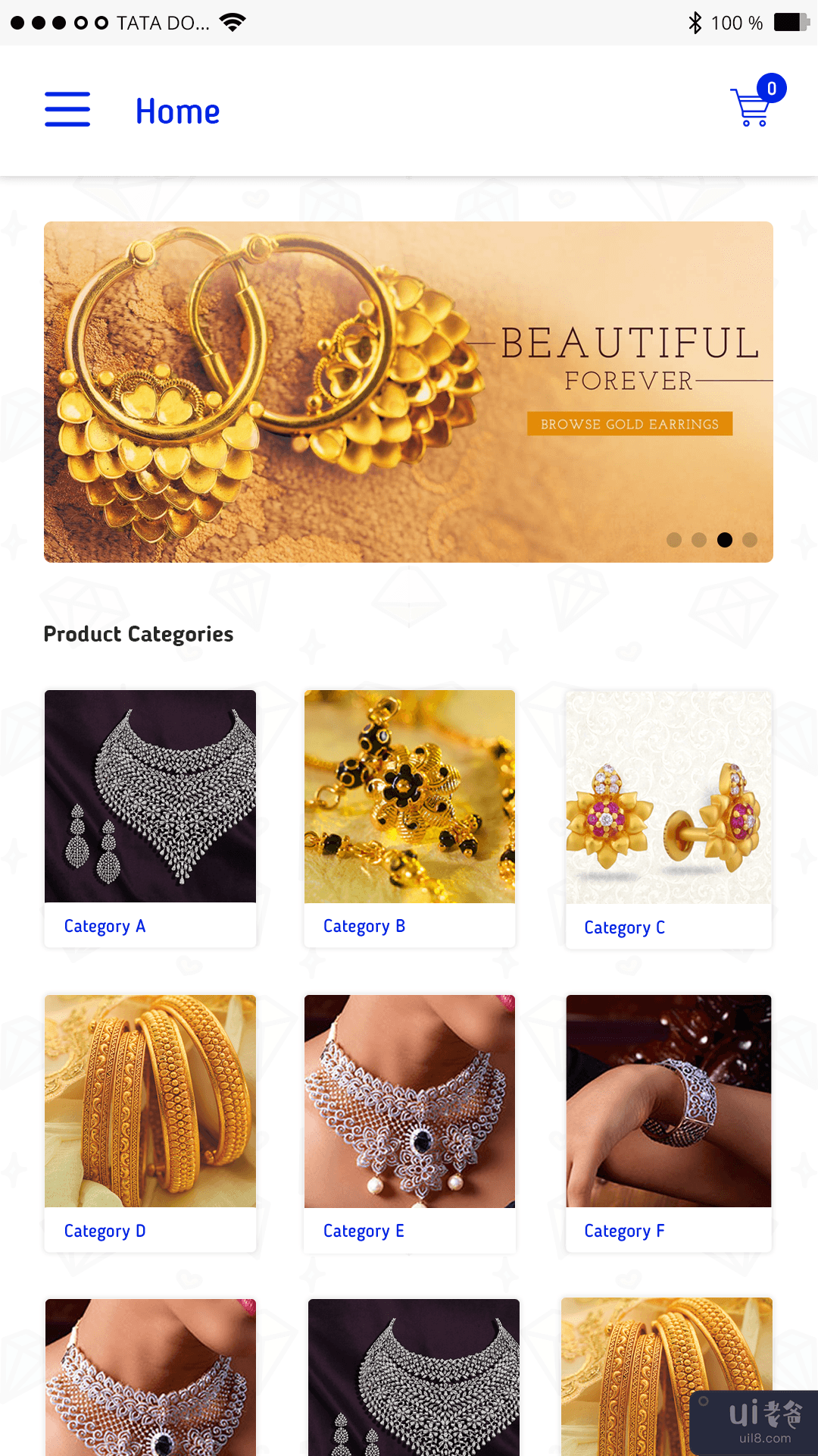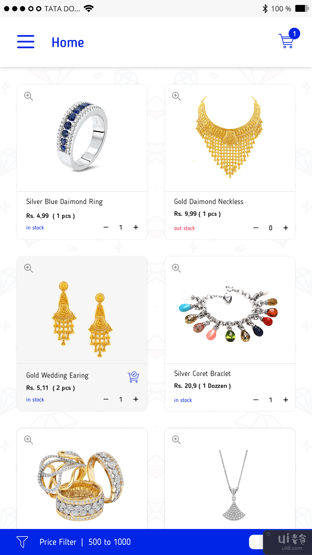 I design jewellery app concept, Customer can view verity of jewellery, select with price filtration, view items details and buy online with payment service.