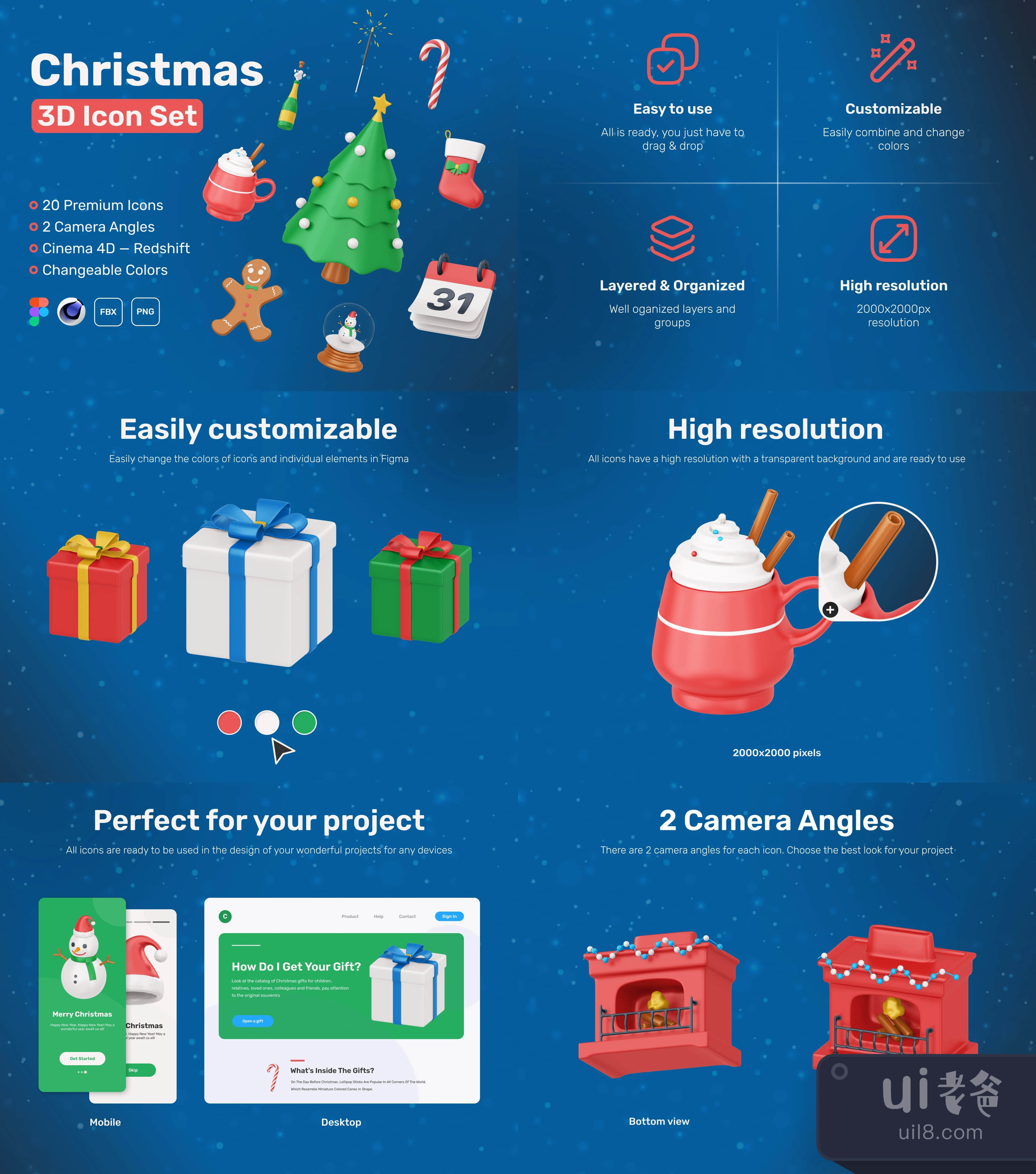 Christmas is a set of unique 3D icons suitable for any holiday project. With these icons, you can easily complement your unique product.
