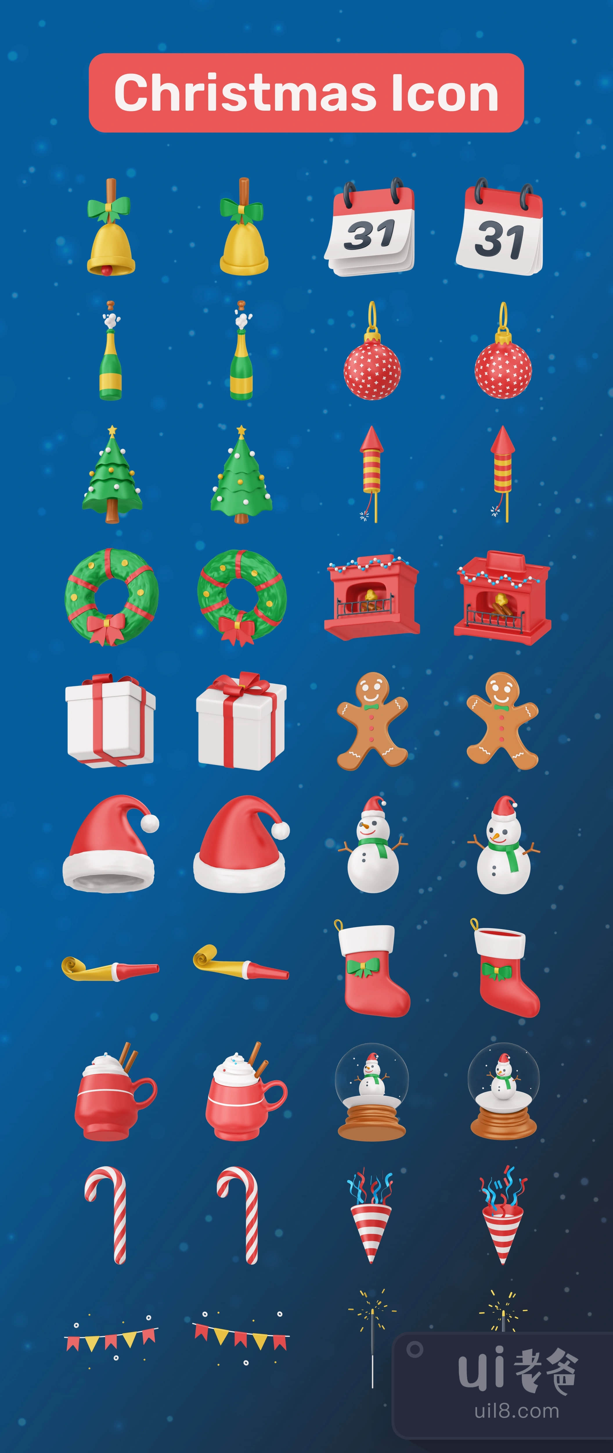 圣诞节3D图标集 (Christmas 3D Icon Set)