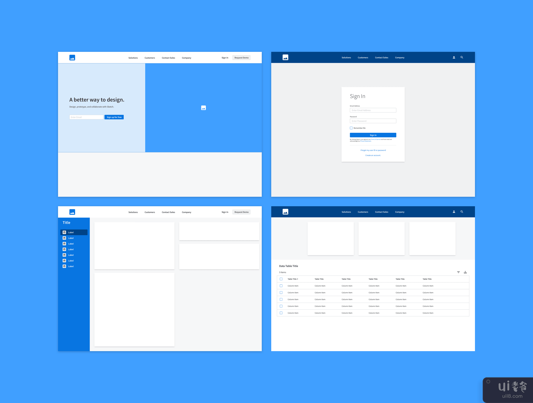 Canvas is a UI kit to kickstart your growing company. This kit will help you effortlessly design professional UI mockups.