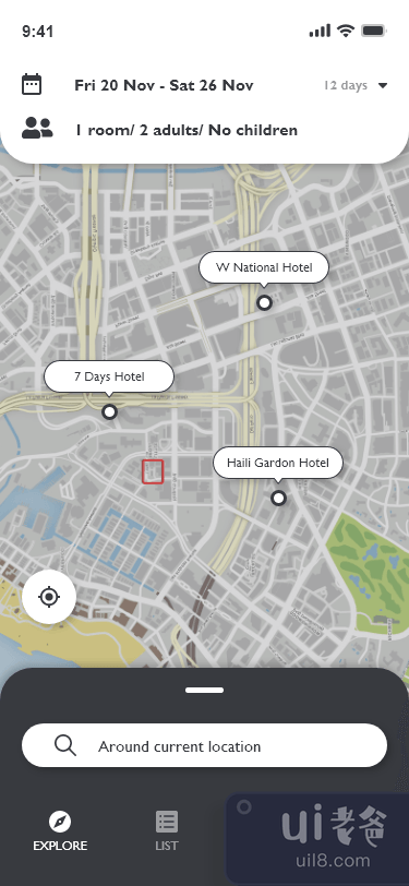 酒店位置界面(Hotel location UI)