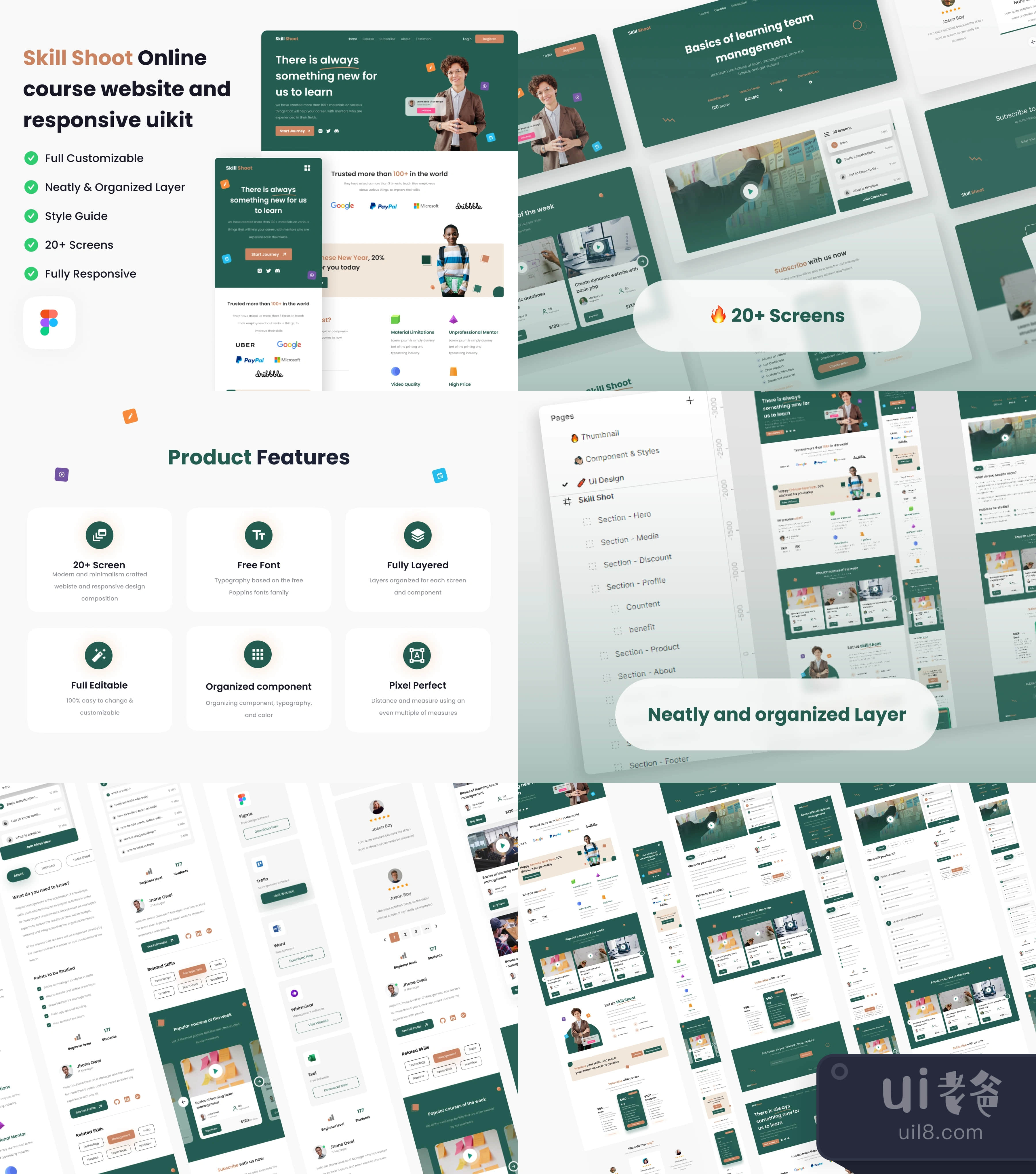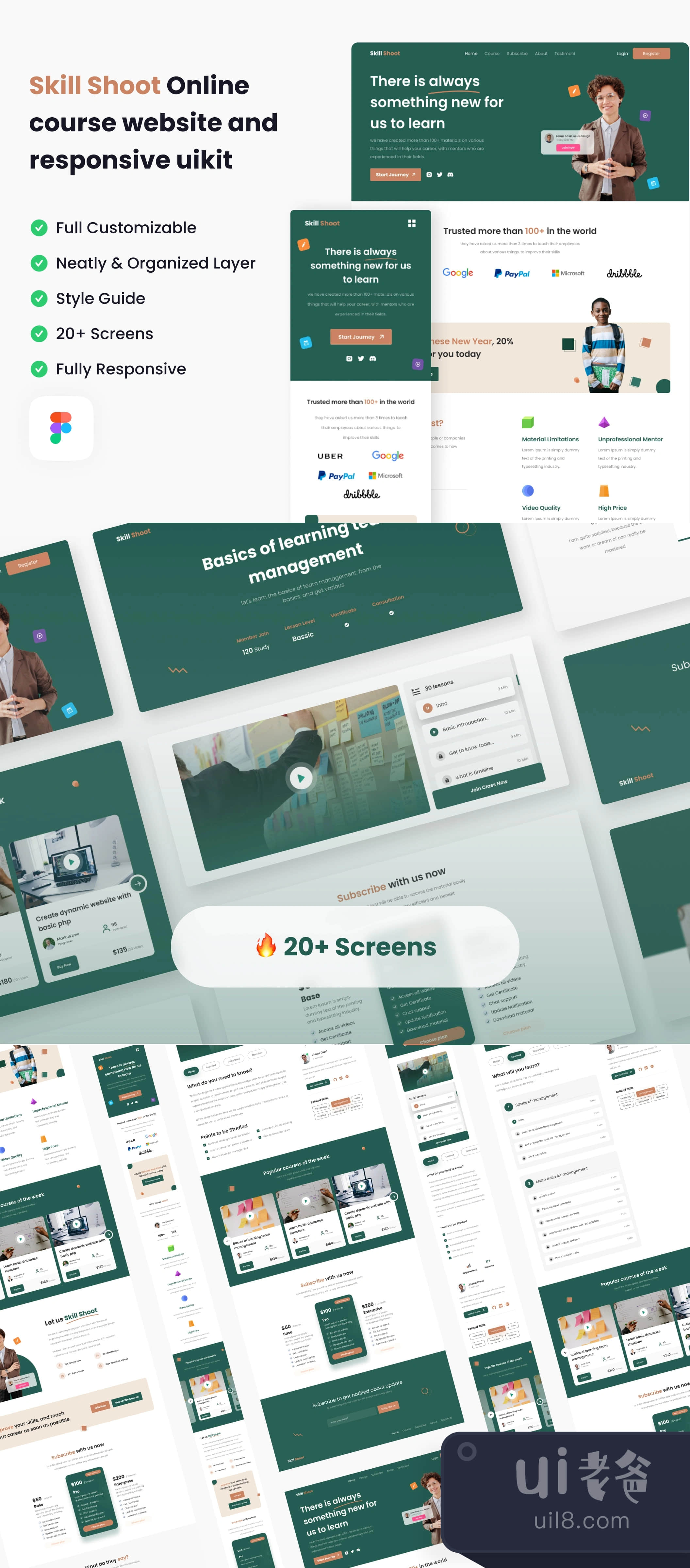 skill shoot是一个uikit webiste产品,其目的是创建一个在线课程网站,其中这个设计已经满足了创建一个在线课程的步骤。