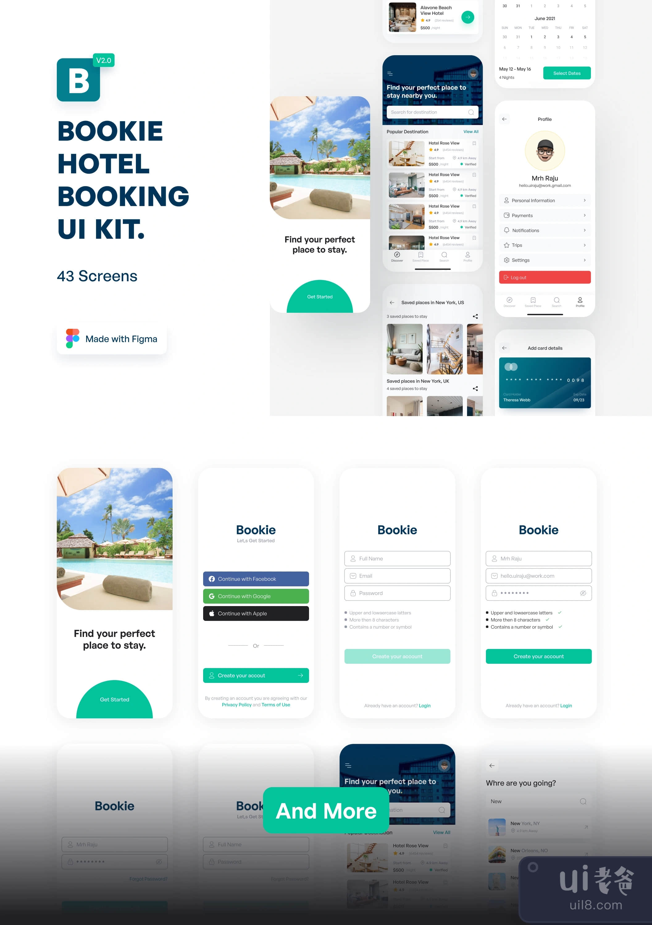 BOOKIE酒店预订UI Kit V2 (BOOKIE Hotel Booking UI Kit V2)