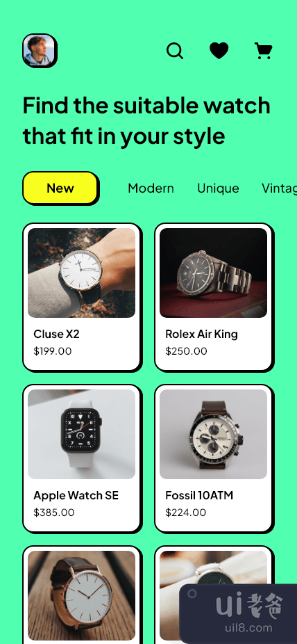 手表商店应用程序 |新粗野主义概念(Watch Store App | Neo-Brutalism Concept)