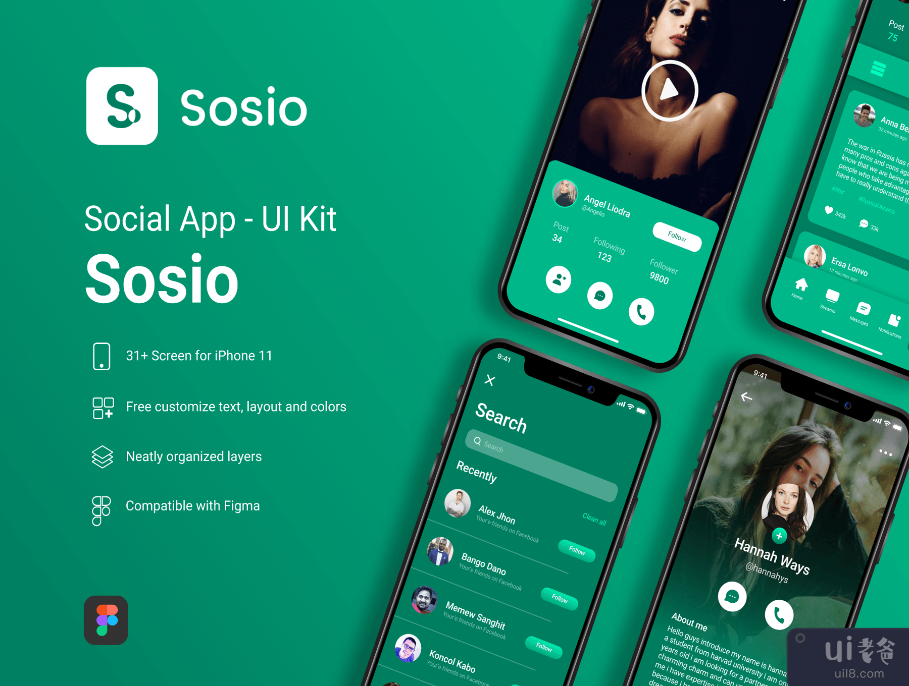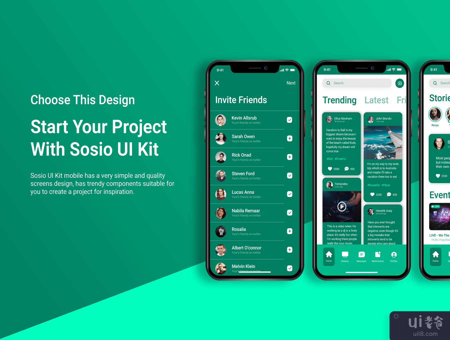 Sosio-社会应用移动UI工具包 (Sosio- Social Application Mobile UI Kit)