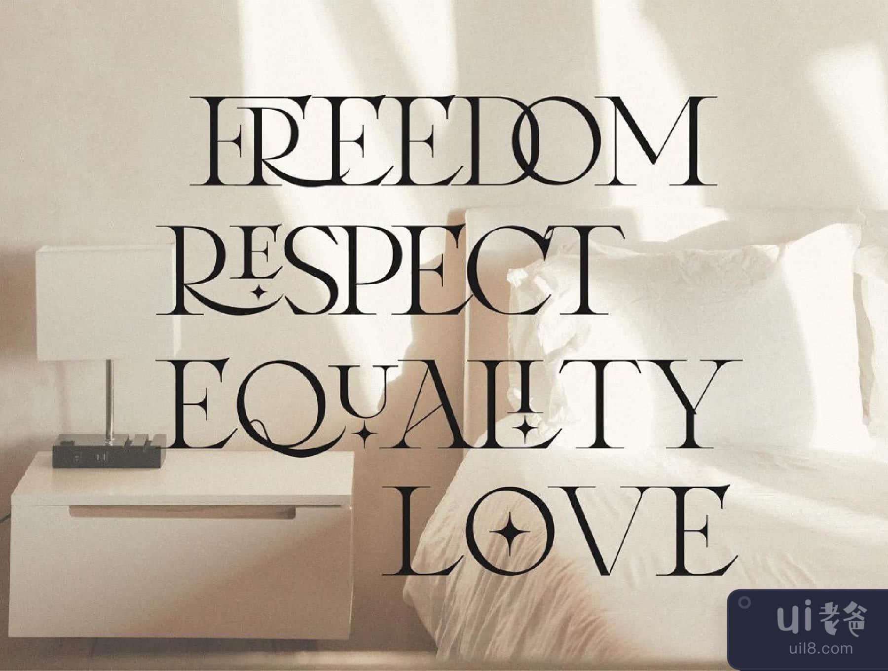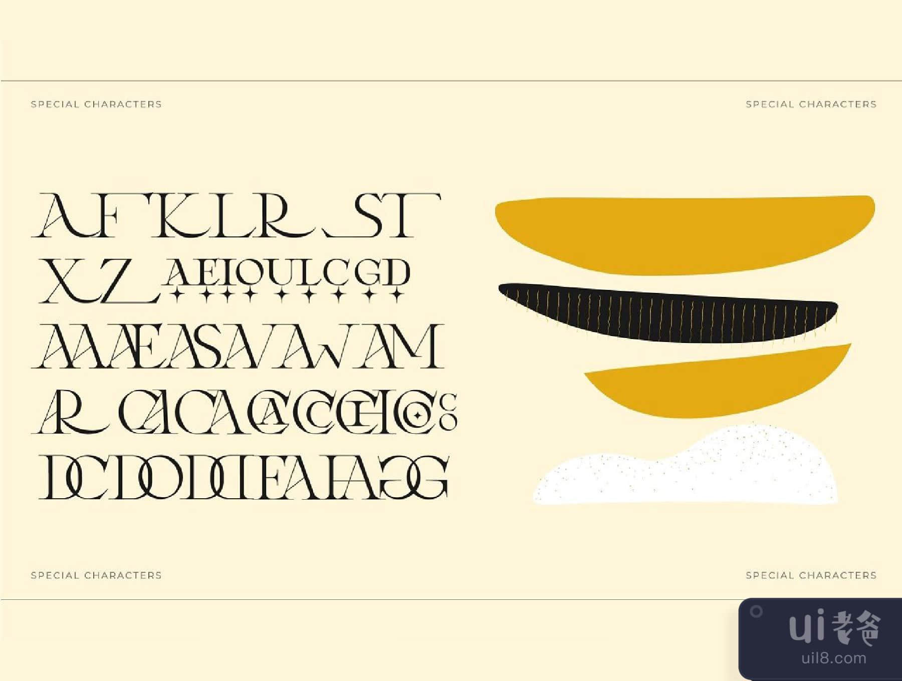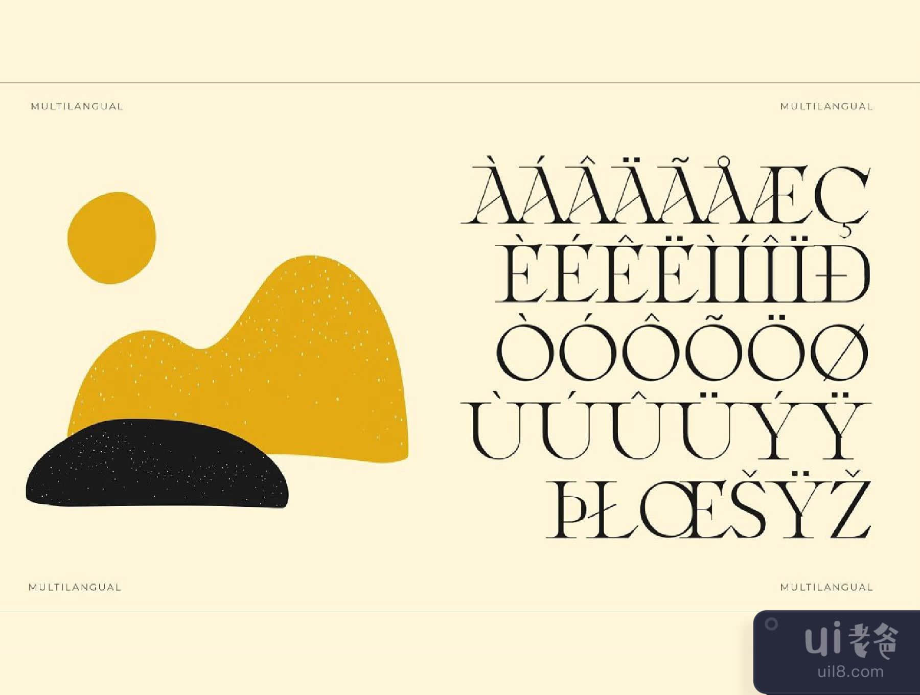 汝拉是一款当代复古衬线字体,其风格基于18世纪的欧洲美学,既优雅又独特,具有平滑和锐利的曲线和美丽的连词,大量的特殊替代字形、装饰物和多语言支持。它是一种非常通用的字体,在大尺寸和小尺寸中都很好用。Laxura是品牌项目、标志设计、服装品牌、产品包装、杂志标题的完美选择,或者仅仅作为任何背景图片的时尚文本叠加。