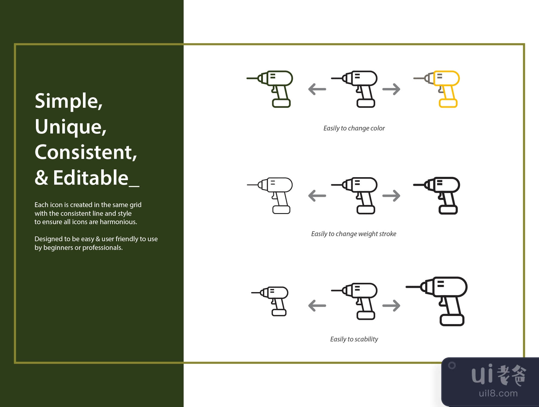 你可以根据你的需要编辑它,改变颜色和修改图标,如此简单。那么你还在等什么呢?现在就购买,并开始使用这个令人敬畏的图标!