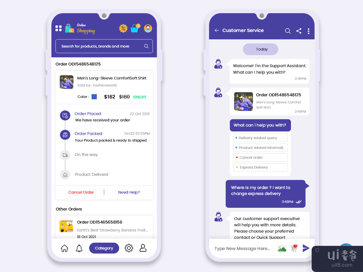 电子商务产品帮助和客户服务移动应用程序 UI 套件(Ecommerce Product Help and Customer Service Mobile App UI Kit)