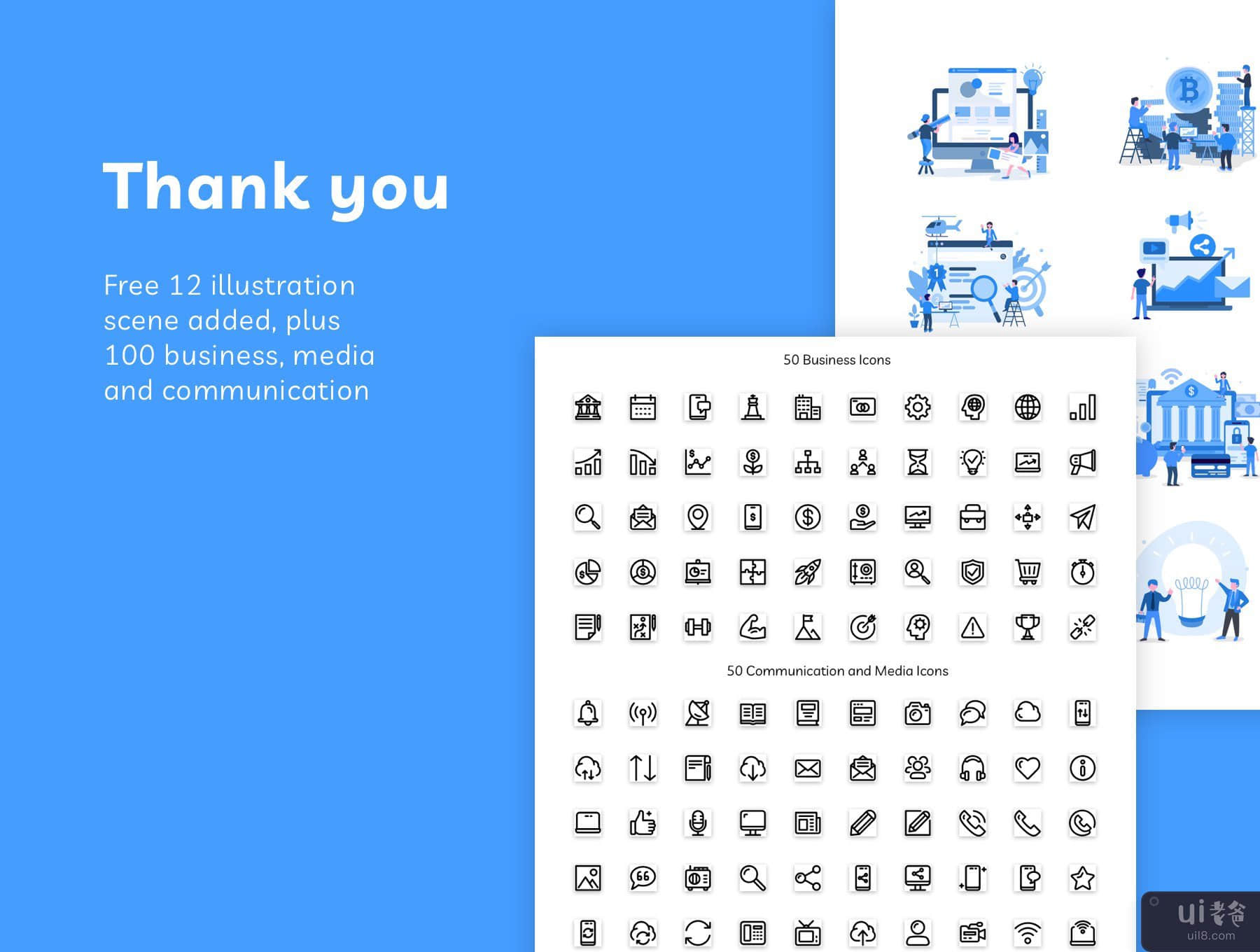 Features- 5 Premade Landing Page- 32 Premade Screens- 11 Popular Categories- Easily change colors- Easily change text style- Well organized layers and groups- Fully editable- Free 12 Illustration scenes- Free 100 Icons