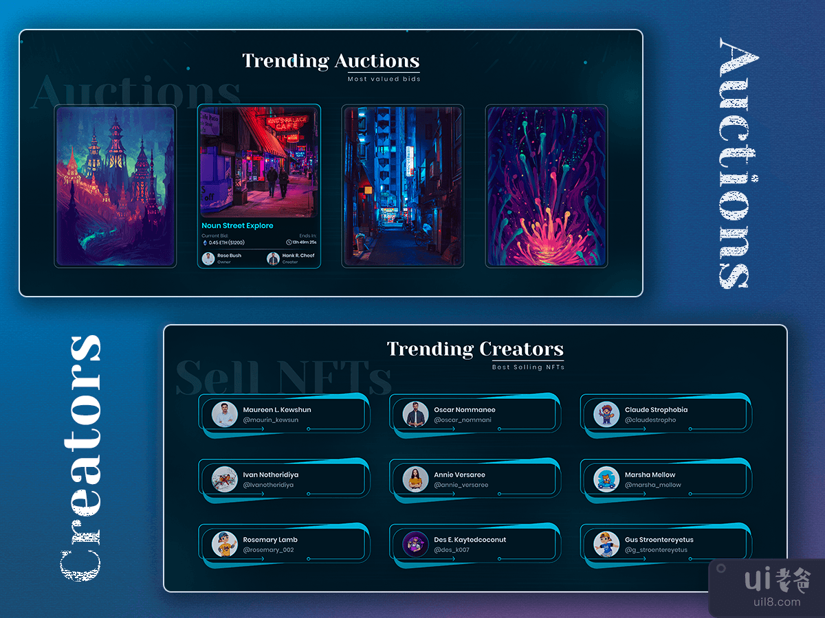 - Very useful for developers to find NFTs markeplace landing page concept, flow and designs.