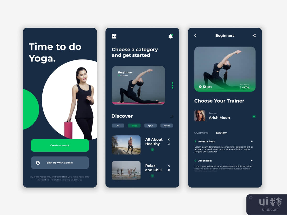 大家好!这是我对瑜伽应用设计的探索。我用 Figma 设计了这个应用程序。如果你喜欢这个设计,请竖起大拇指!谢谢大家。