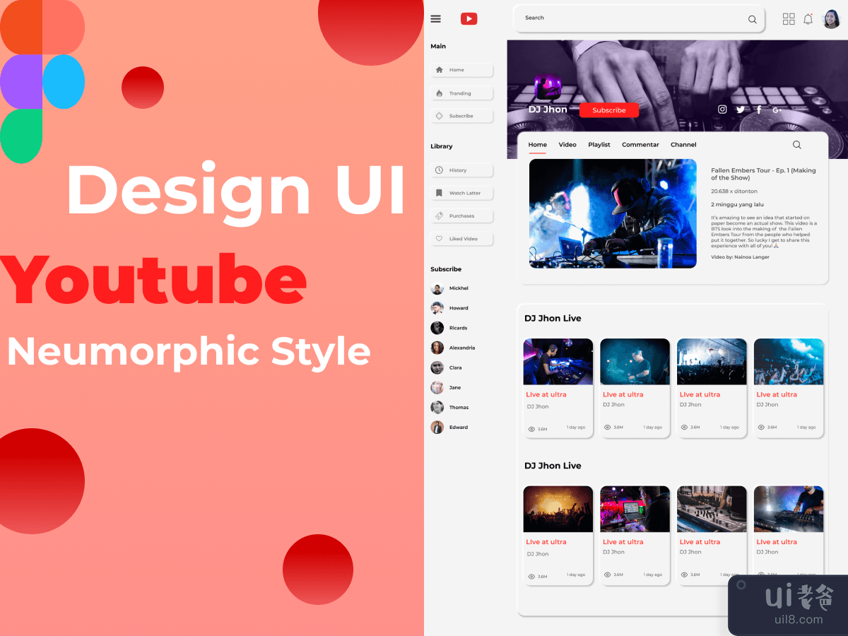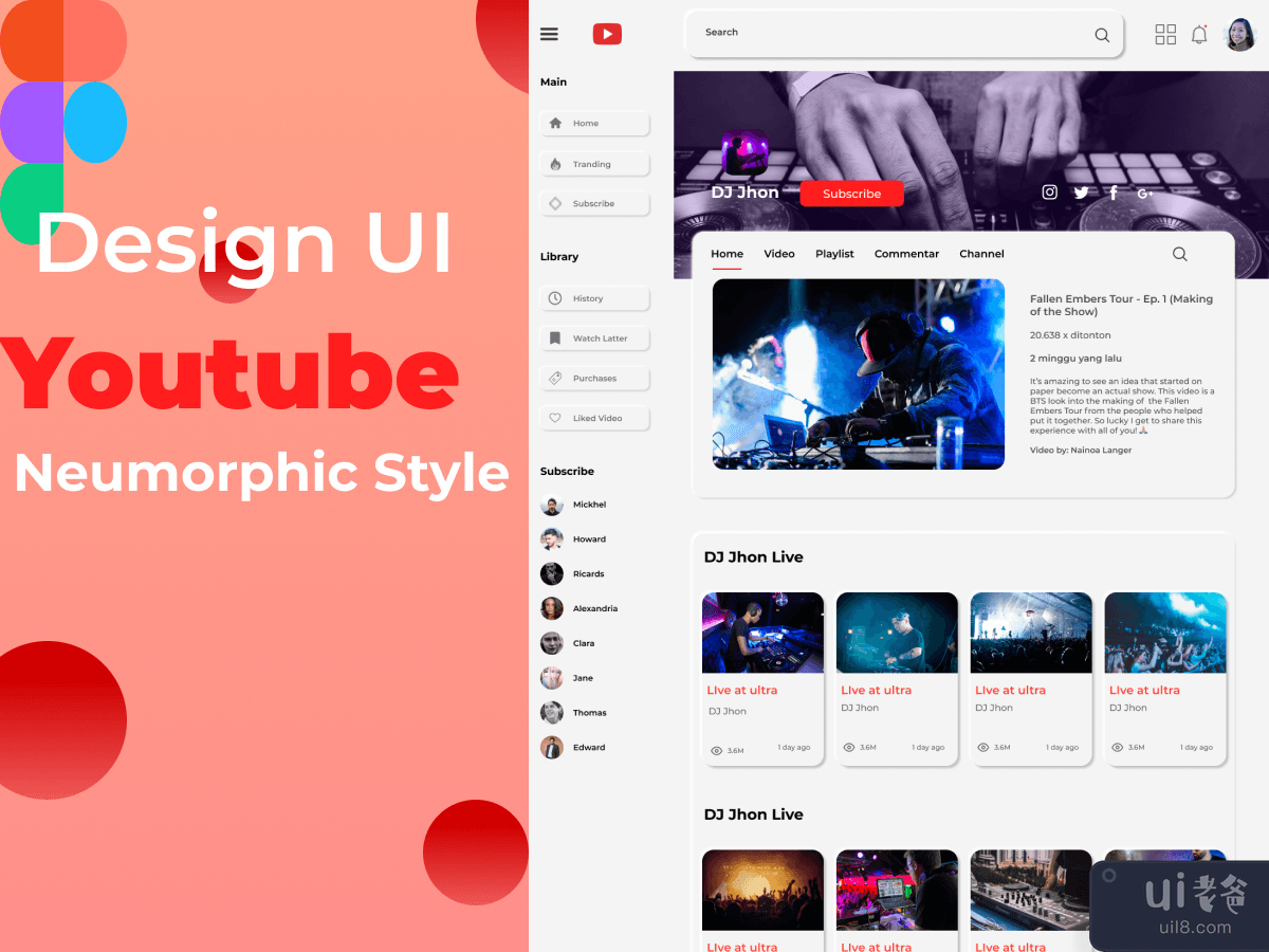 today I made a new design, Youtube UI design with Neumorphic style which looks so cool. And if you're interested, you can buy it guys. Thank you very much...