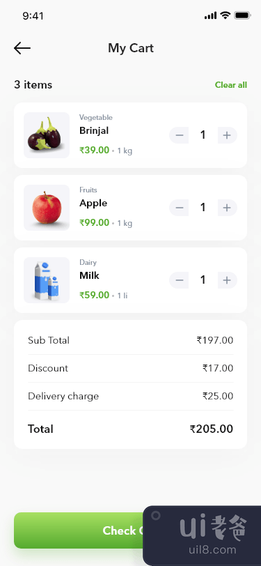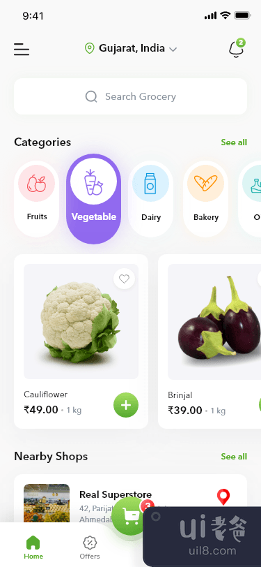 它将帮助你设计清晰的食品和食品界面。杂货应用程序更快更容易。用户将能够访问该应用程序以查找附近的商店。如果喜欢,请点个赞👍
