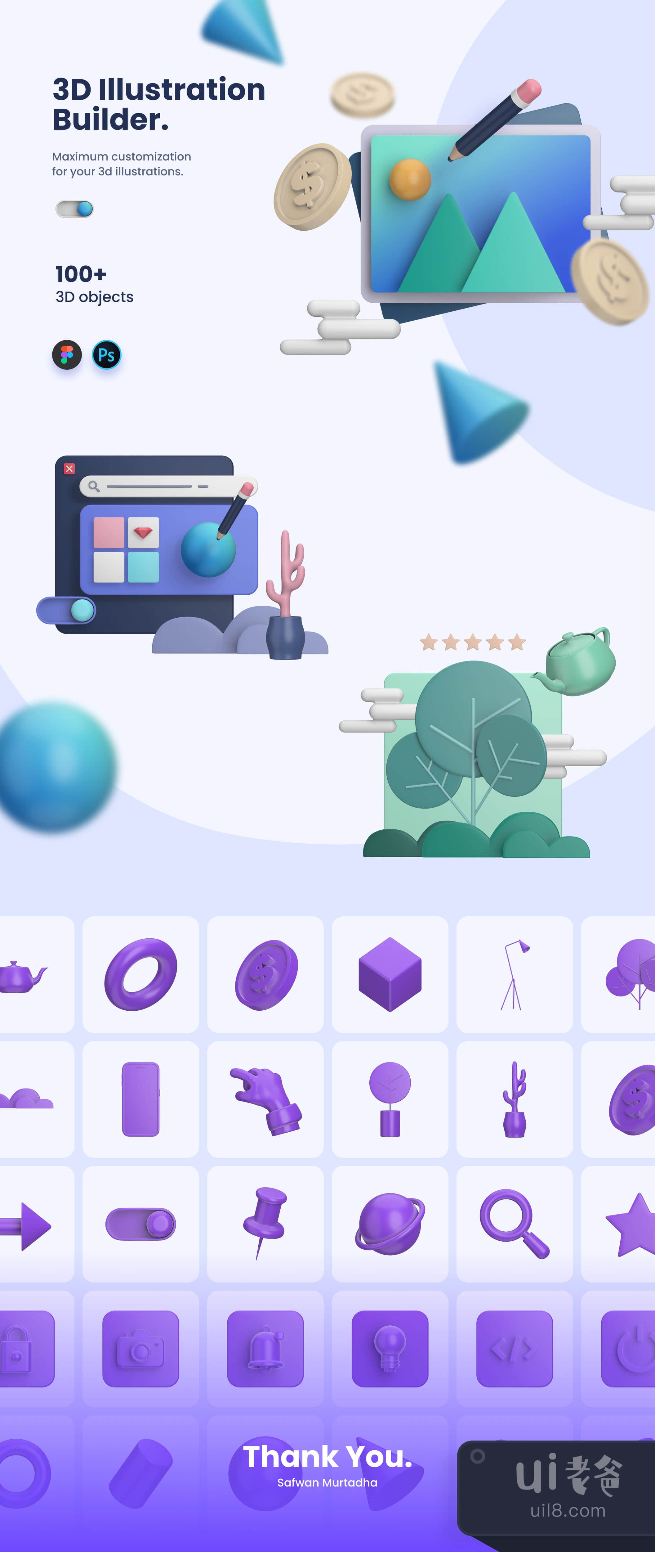 现在就在Figma、Photoshop或Blender中制作你自己的3D插图吧!