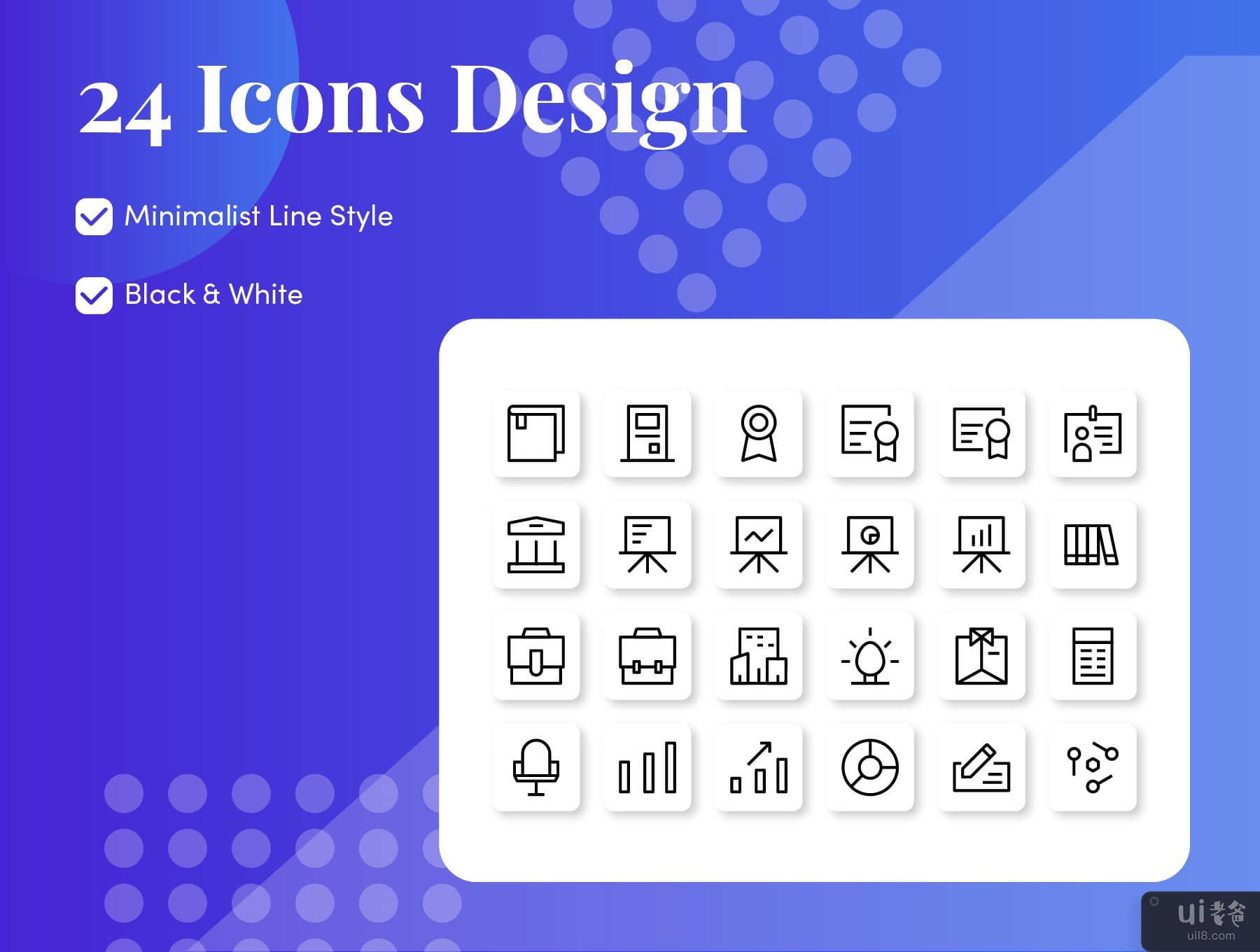 您好,这是我的新图标,名称是商业/金融图标设计,我使用极简风格。