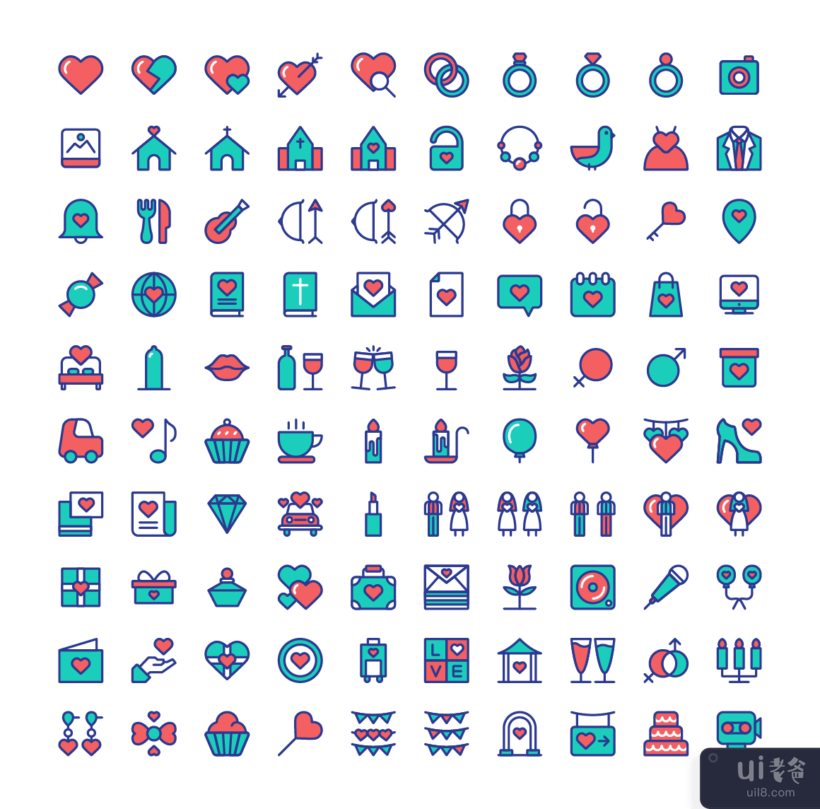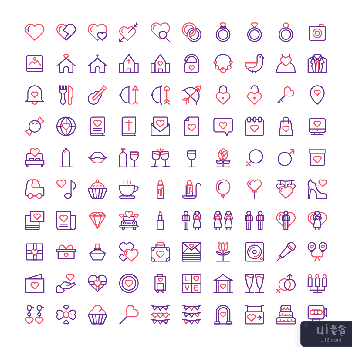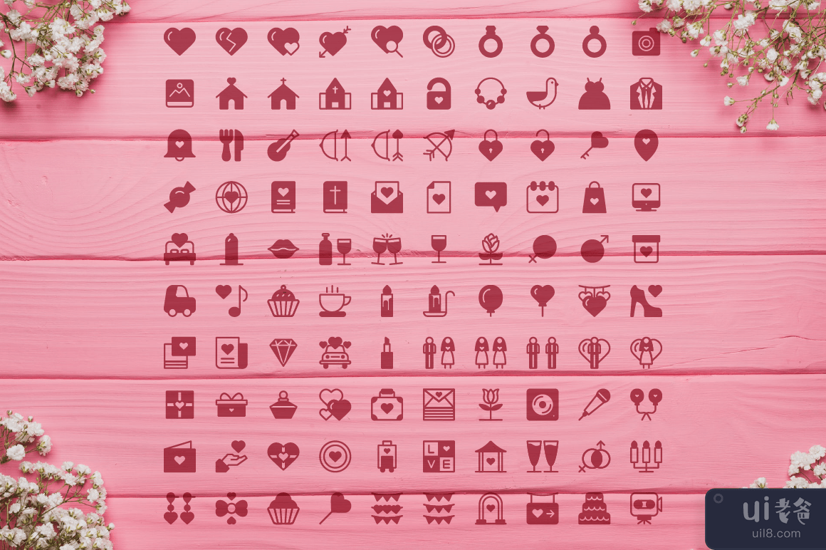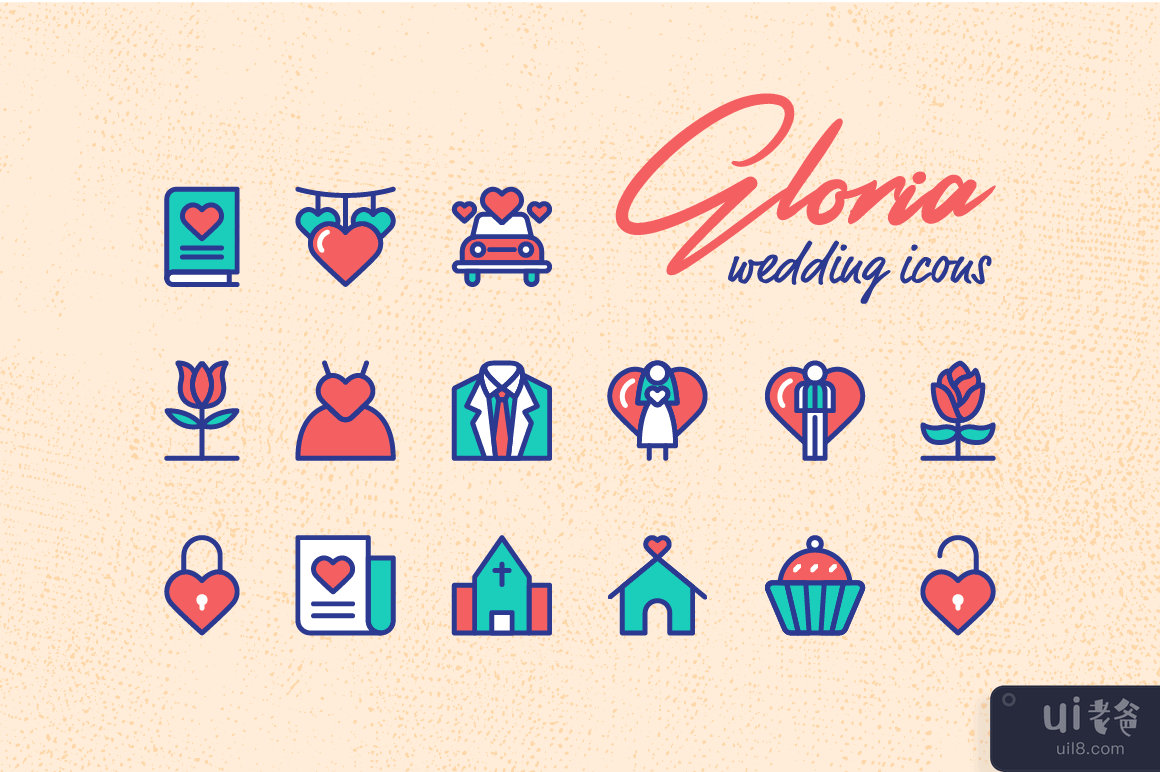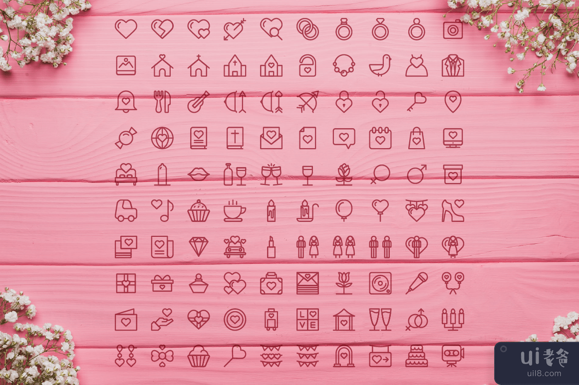 婚礼婚姻图标集矢量(Wedding Marriage Icon Set Vector)