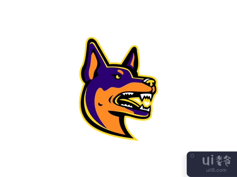 澳大利亚凯尔派、凯尔派、倒钩或农夫狗头的吉祥物图标插图,这是一只澳大利亚牧羊犬,从侧面以复古风格的孤立背景观察。