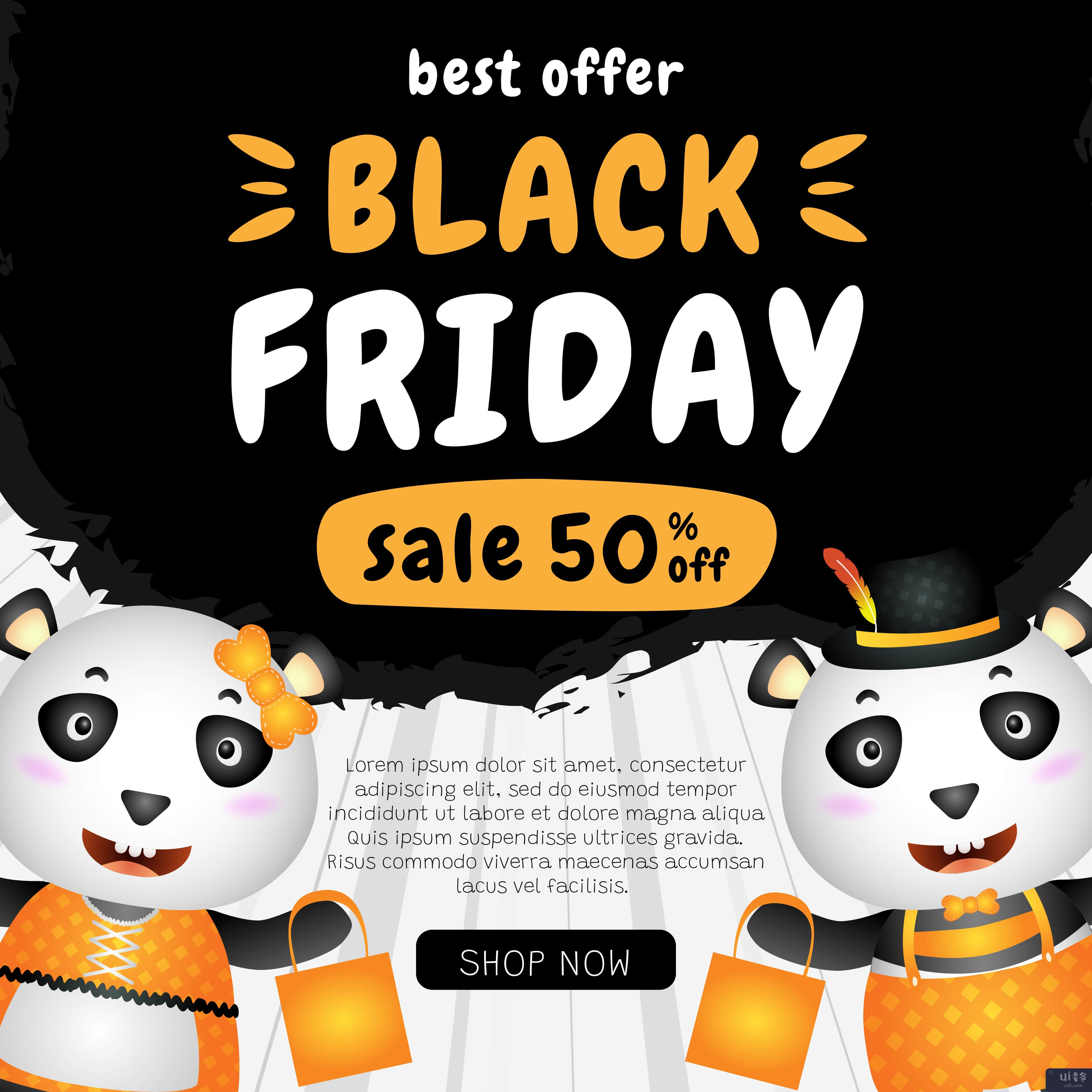带有可爱熊猫插图的黑色星期五折扣横幅(spacial discount black friday banner with cute panda illustration)