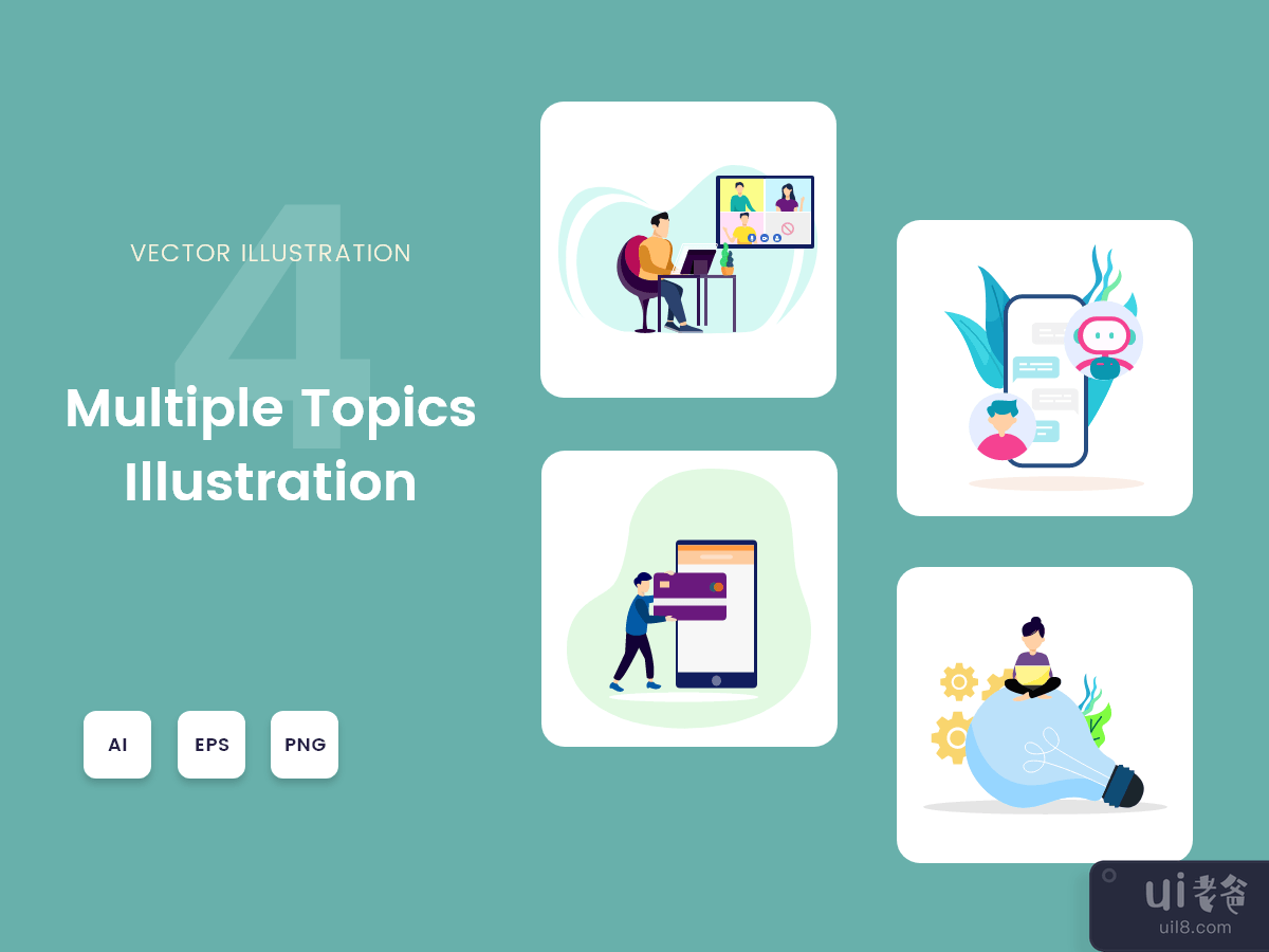 登陆页面的多个主题插图(Mutiple topics illustration for landing page)