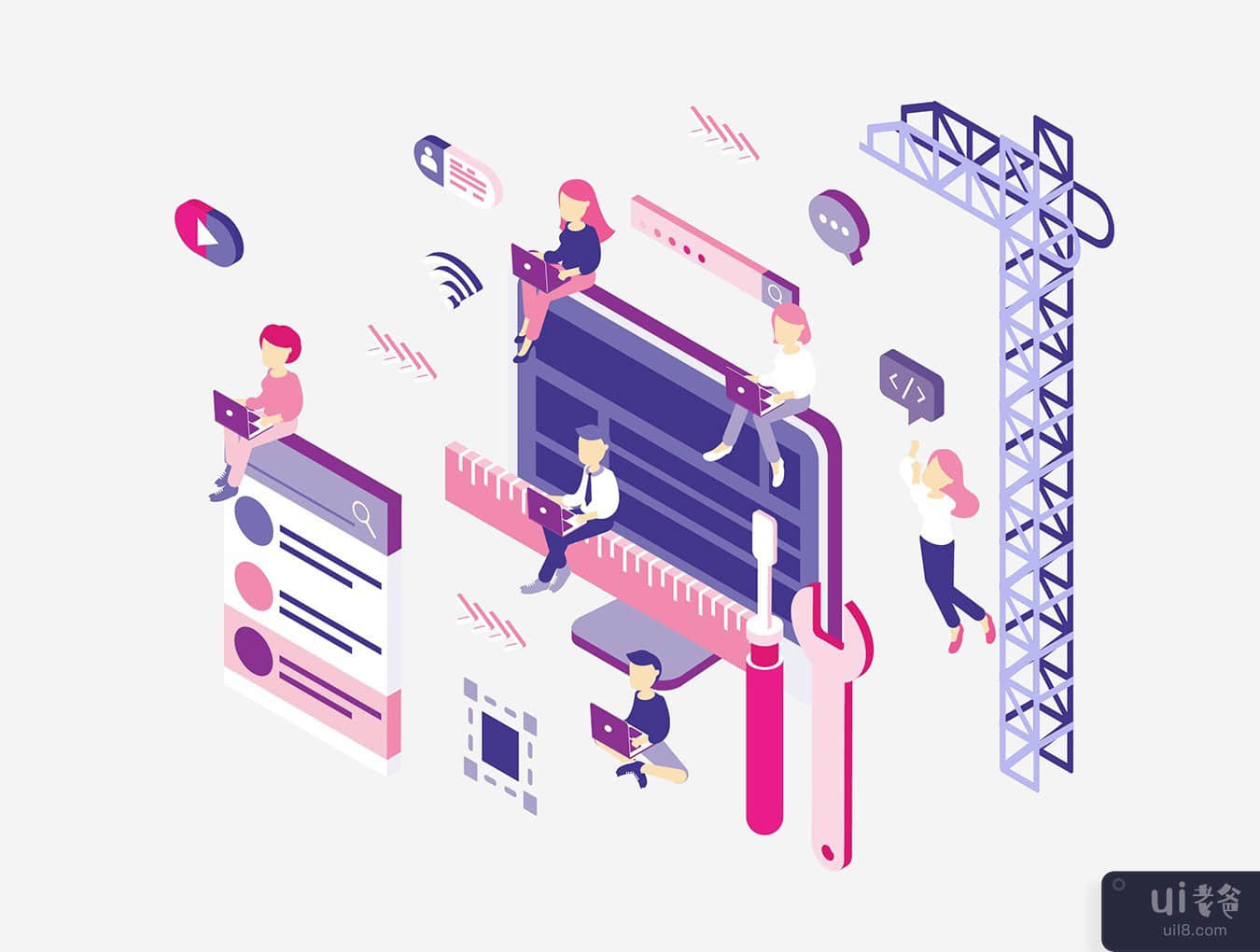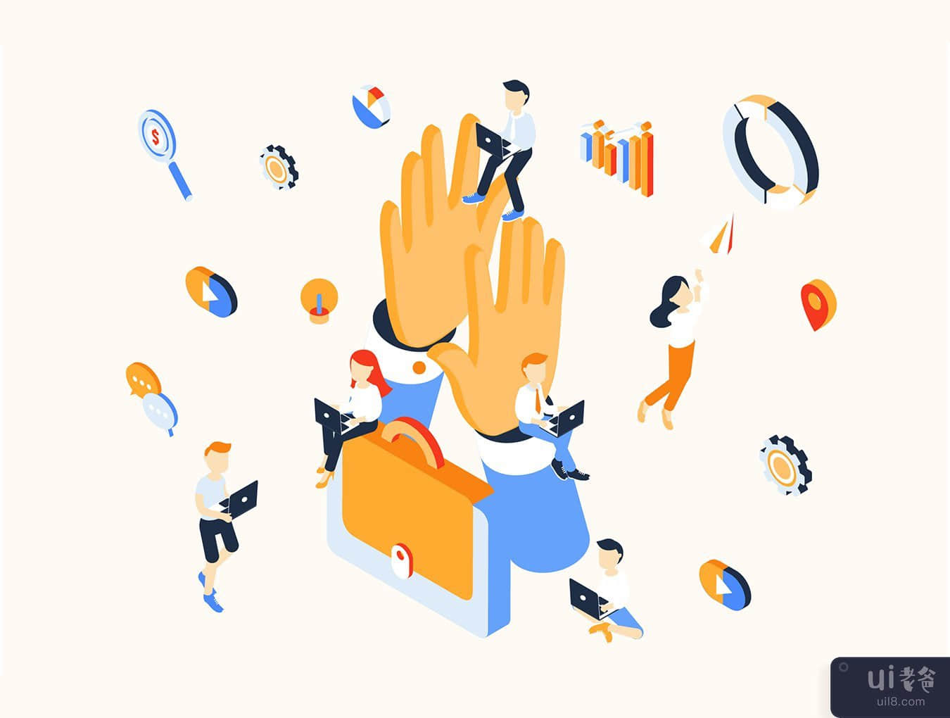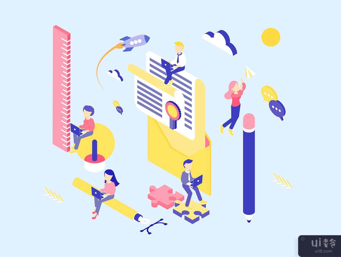 包括 8 个等距插图概念。 它旨在为主题提供图形: Brading、创意、创意过程、领导力、创业、团队合作、网页设计、网页开发。所有元素都是 100% 矢量并与 Illustrator 兼容。如果您有不同的要求,请联系我:angelbijob@gmail.com