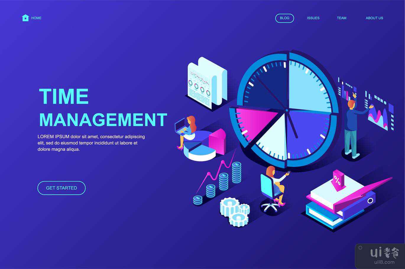 时间管理等距登陆页面模板(Time Management Isometric Landing Page Template)
