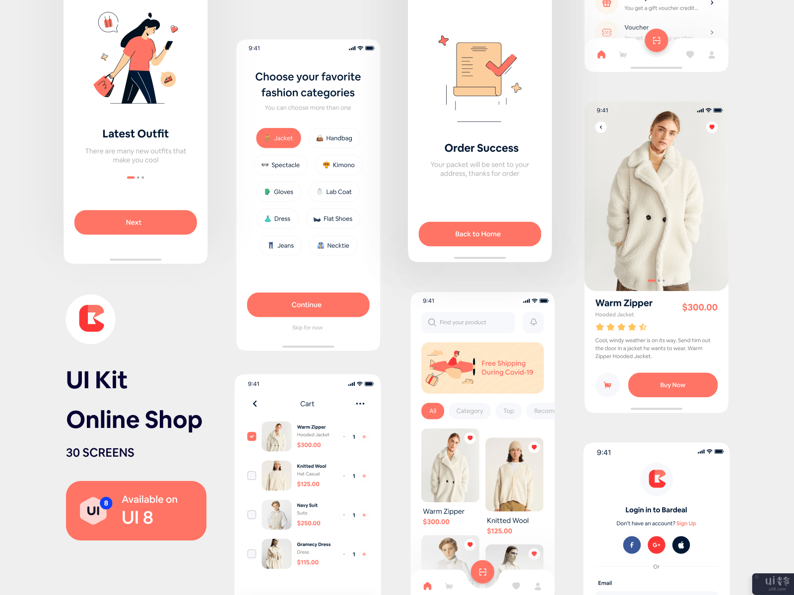 I want to share my exploration about Online Shop UI KIT. You can grab it on UI8 at Odama store ?