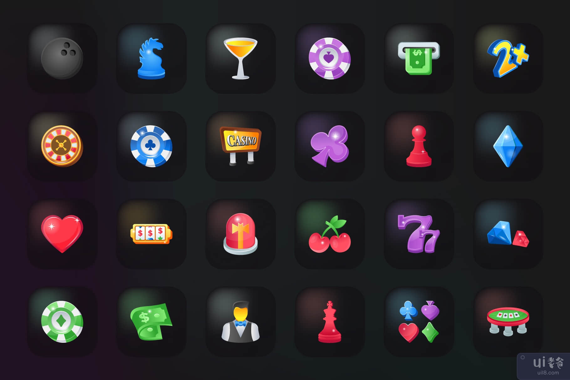 Looking for cool casino icons? We have what you need. Our pack of cool casino icons like poker icon will help you make your web and mobile projects more engaging and exciting for the users. All these icons are vector-based to offer you customization according to your requirements.