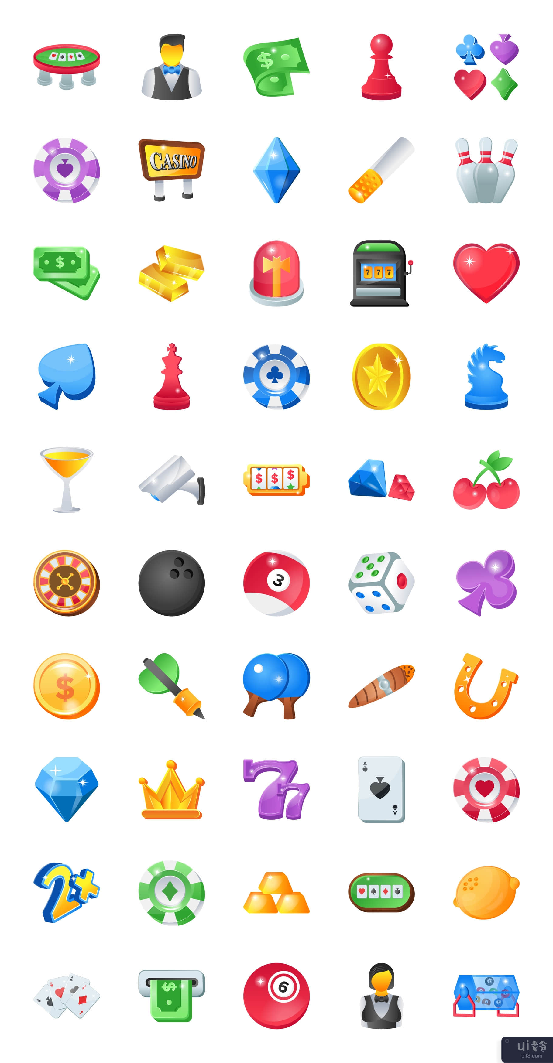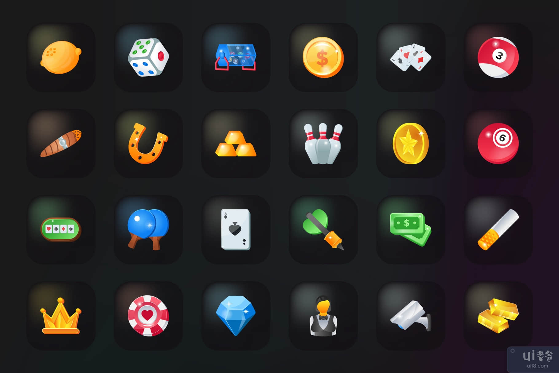 寻找酷炫的赌场图标?我们有你需要的。我们的扑克图标等很酷的赌场图标包将帮助您使您的网络和移动项目对用户更具吸引力和令人兴奋。所有这些图标都是基于矢量的,可根据您的要求为您提供自定义。