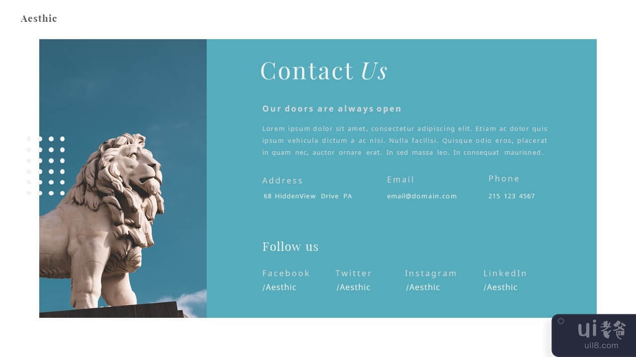 此 PowerPoint 模板包含现代、优雅、干净和简单的内容幻灯片。