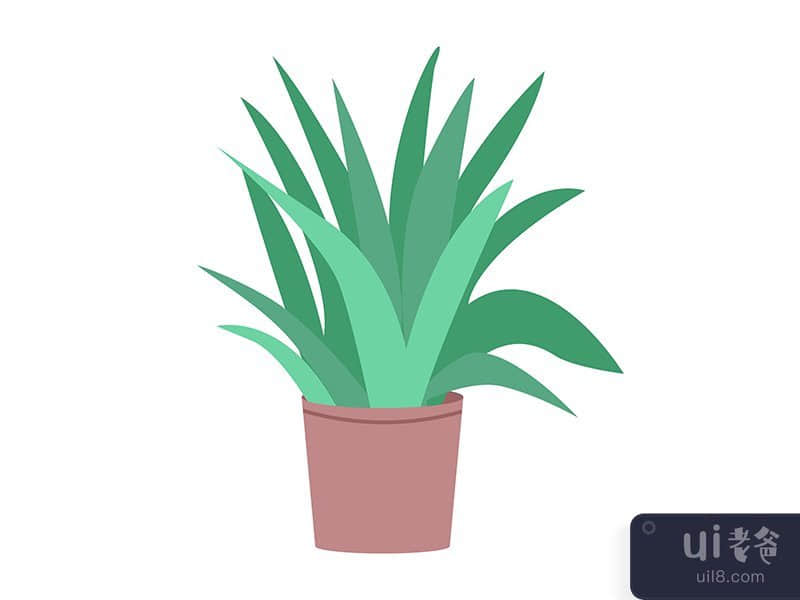 盆栽半扁平色矢量对象中的芦荟植物(Aloe vera plant in pot semi flat color vector object)