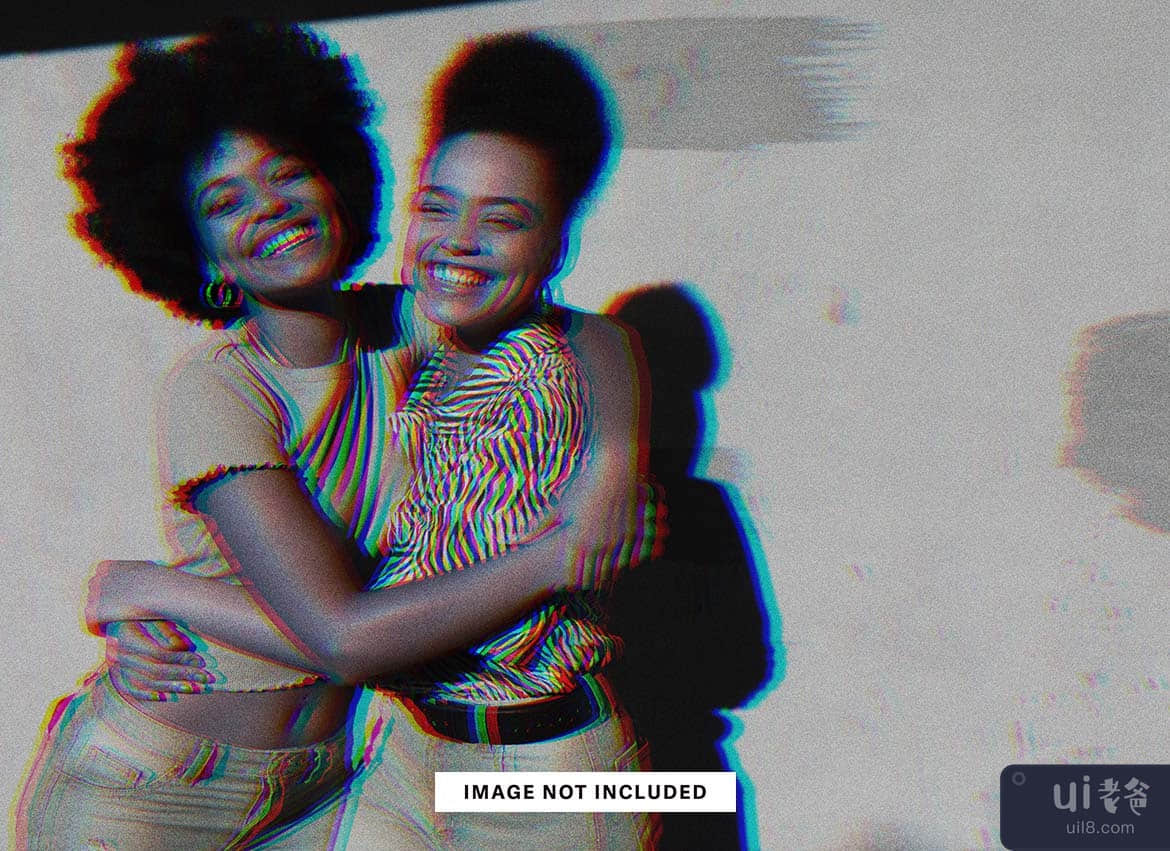 File contains Anaglyph Image Effect with image placeholders for Adobe Photoshop. These placeholders can be replaced with your text or artwork.