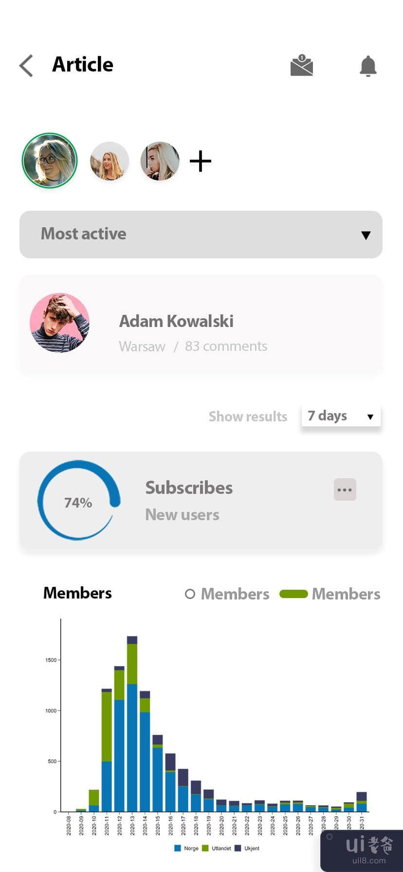 当前位置: 首页UI正文 文章应用(Article App) UI 3年前 0 3.3K 12 收藏 -中文- 文章应用 UIUX -英文- Article Application UIUX 声明:本站所有文章,如无特殊说明或标注,均为本站原创发布。任何个人或组织,在未征得本站同意时,禁止复制、盗用、采集、发布本站内容到任何网站、书籍等各类媒体平台。如若本站内容侵犯了原著者的合法权益,可联系我们进行处理。aappapplicationarart PikoRizkyDwinanto青铜用户 收藏 海报 链接