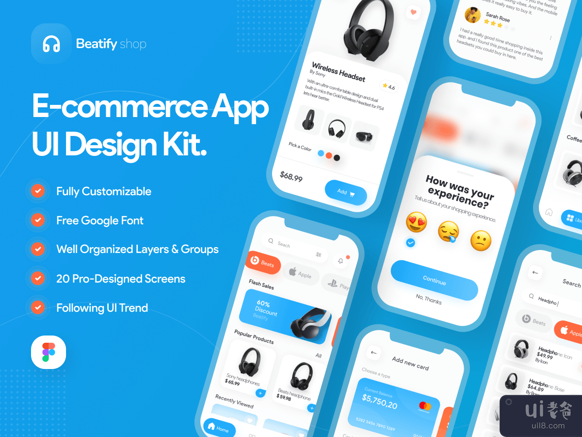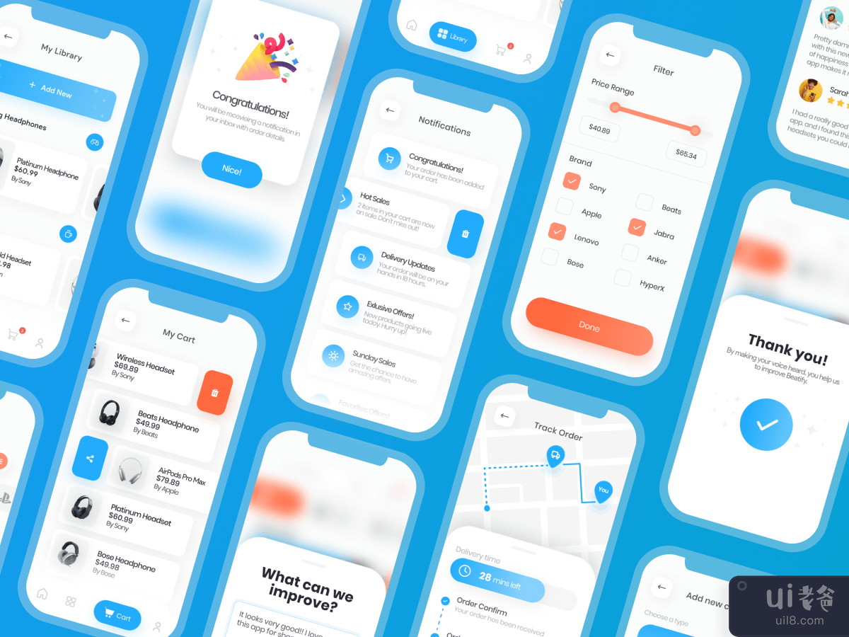 介绍 Beatify,这是一款高级电子商务应用 UI 套件,包含 20 个专业设计的屏幕 40 多个用爱和爱制作的组件帮助您加快创作过程 。< /strong>