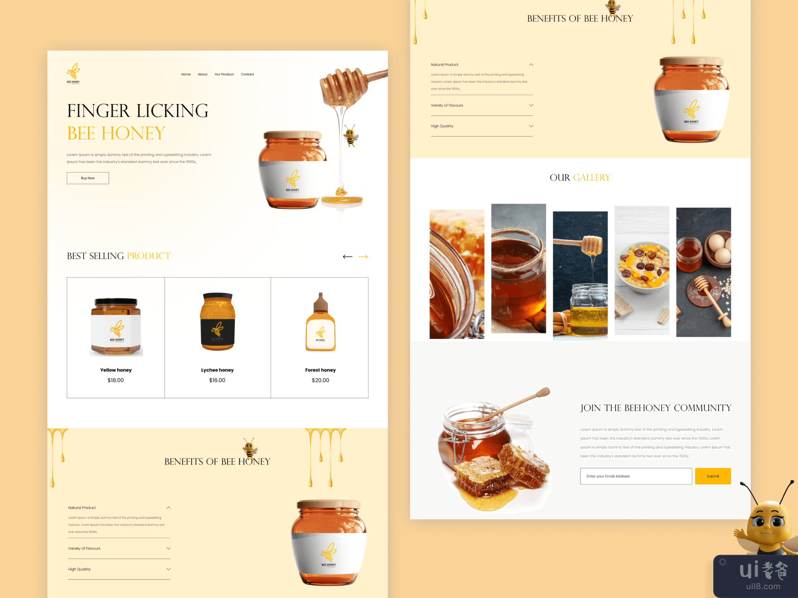 向您展示我们与 Bee Honey Organic 合作的最新作品。从应用程序 UI 设计到创建✨网站页面,再到社交媒体横幅,一切都是由我们精心打造的内部人员完成的。