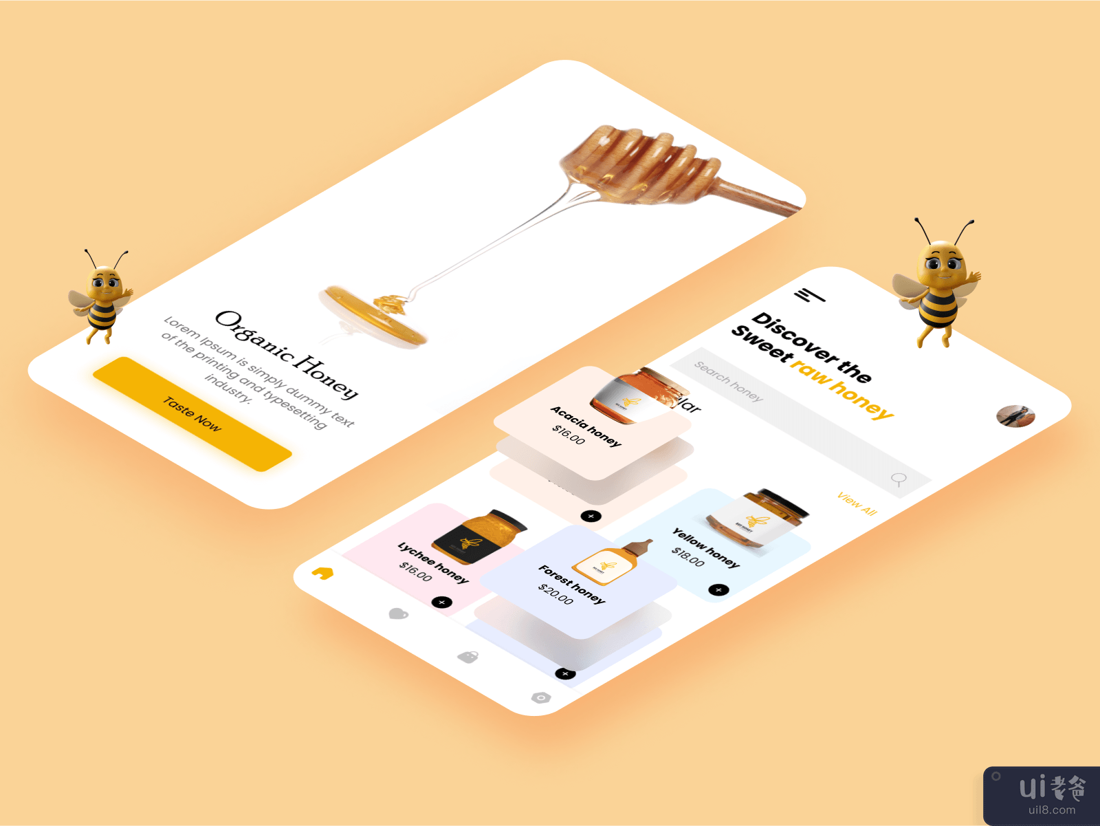 Presenting you our latest🆕 sneak peek from work with Bee Honey🍯 Organic. From app📱 UI design to creating✨ website pages, to social media banners, everything was done in-house🏡 by our honed hands.