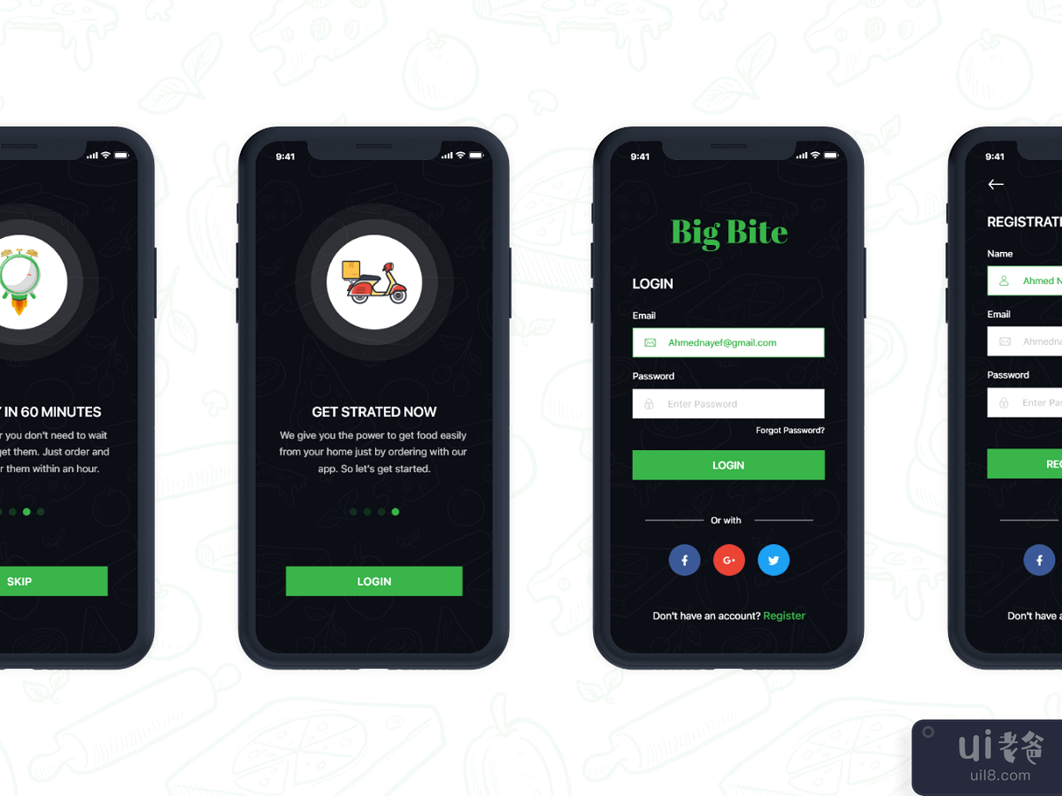 Big bite is a food ordering an iOS app, where you can order food online from home and get the food easily. We designed this app for a better experience with good visual for users. This is full ui kit so you can buy and use it in your project.