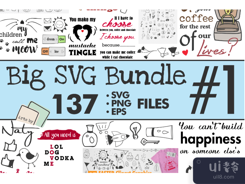 In this big SVG bundle, you will find illustrations, quotes, elements and much more. Some of them come fully colored and others you may use without any color or color yourself. You may also print the designs as printables or apply them on mugs, t-shirts, stickers…etc.