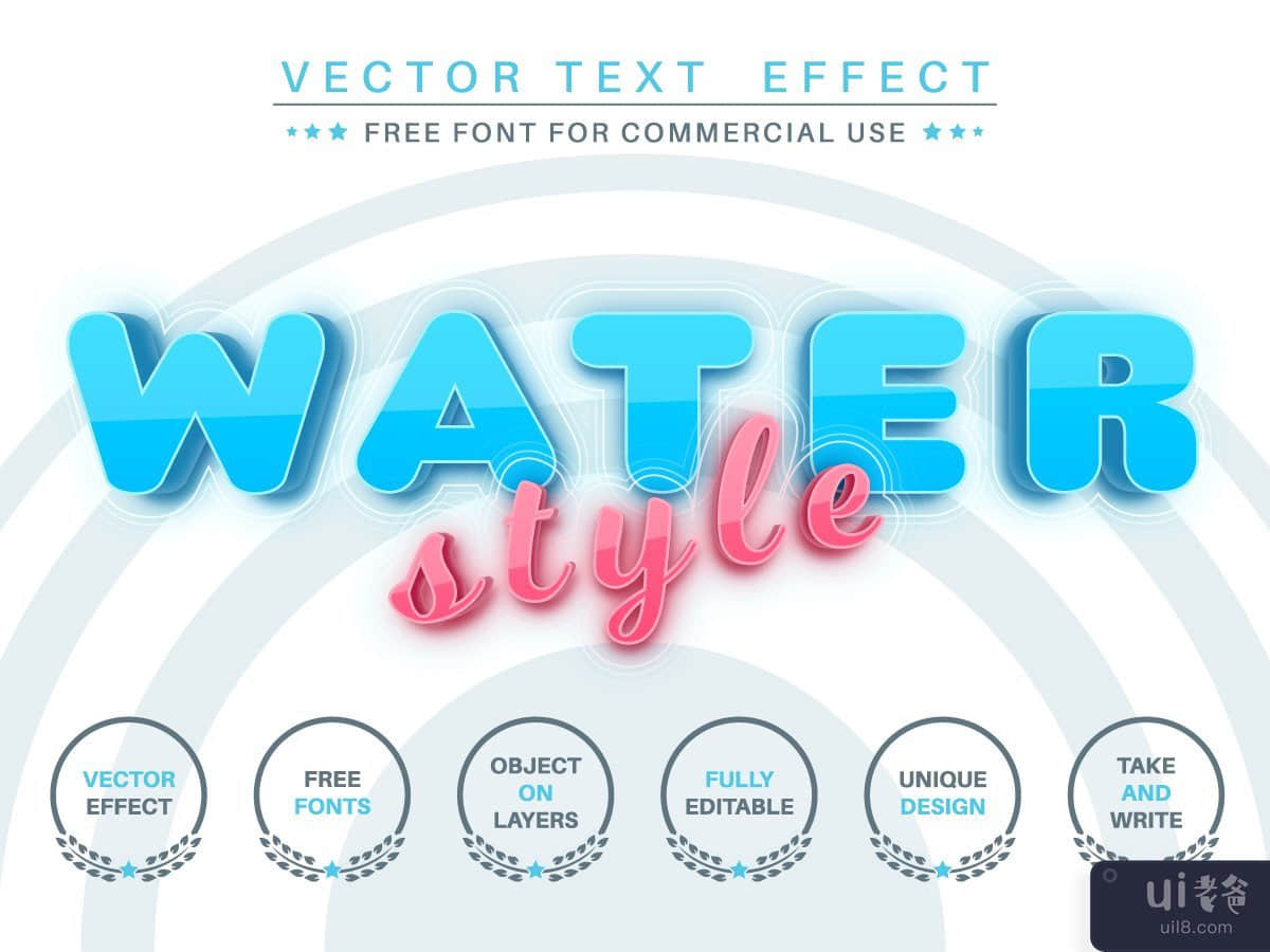 蓝水 - 可编辑的文本效果、字体样式(Blue water - editable text effect, font style)