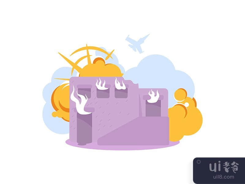 带有导弹半平面彩色矢量对象的轰炸房屋(Bombing house with missile semi flat color vector object)