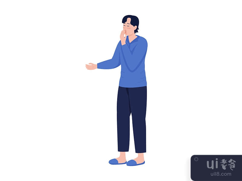 无聊的人半平面颜色矢量字符(Bored man semi flat color vector character)