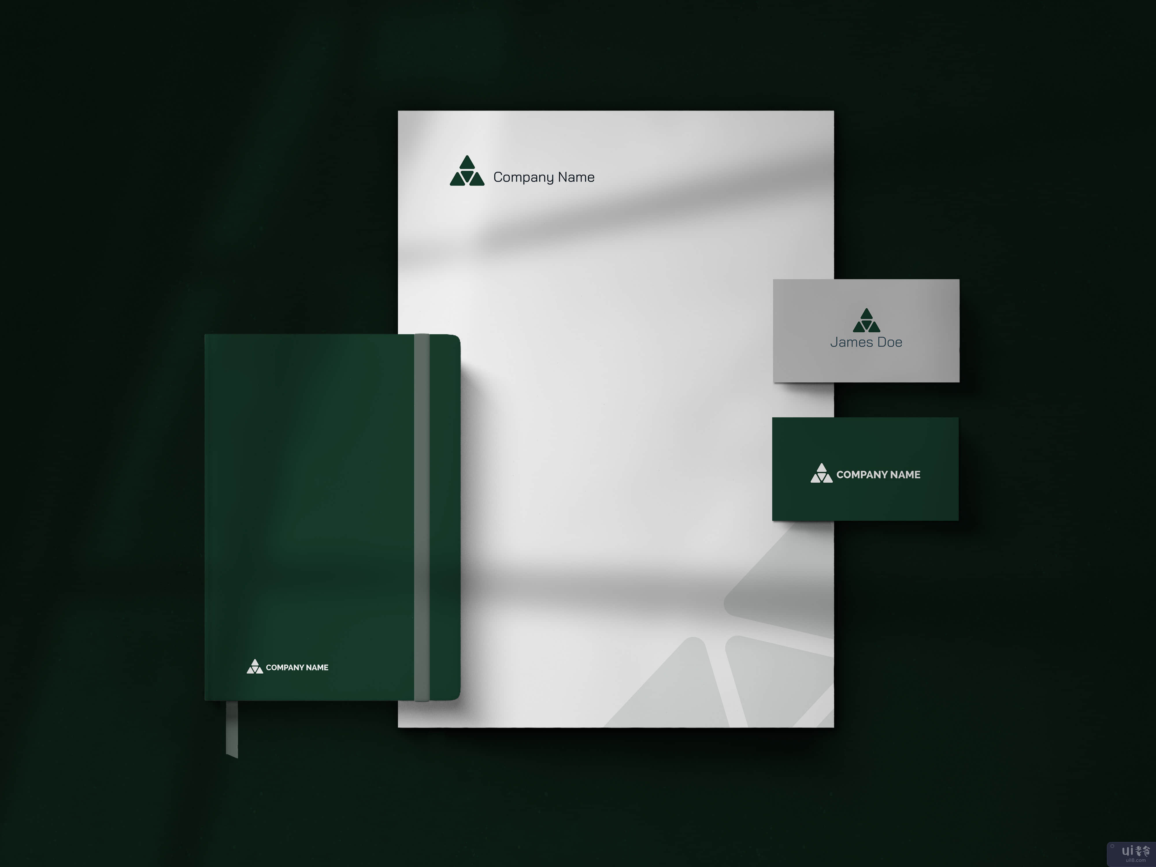 Photoshop 模板可帮助将视觉标识快速模拟到文具上。
