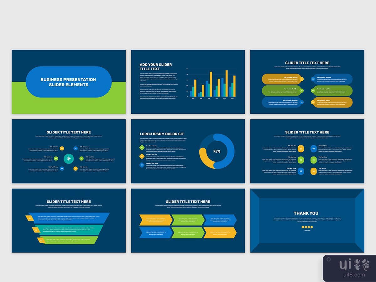 业务演示滑块信息图表元素(Business presentation slider infographic elements)