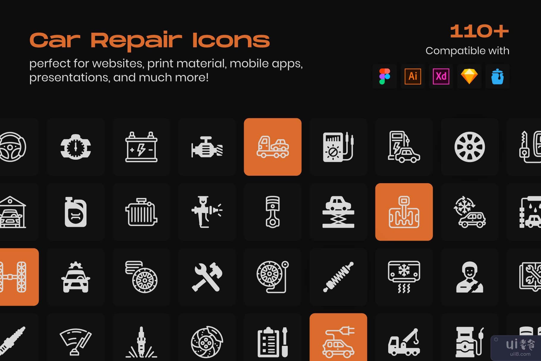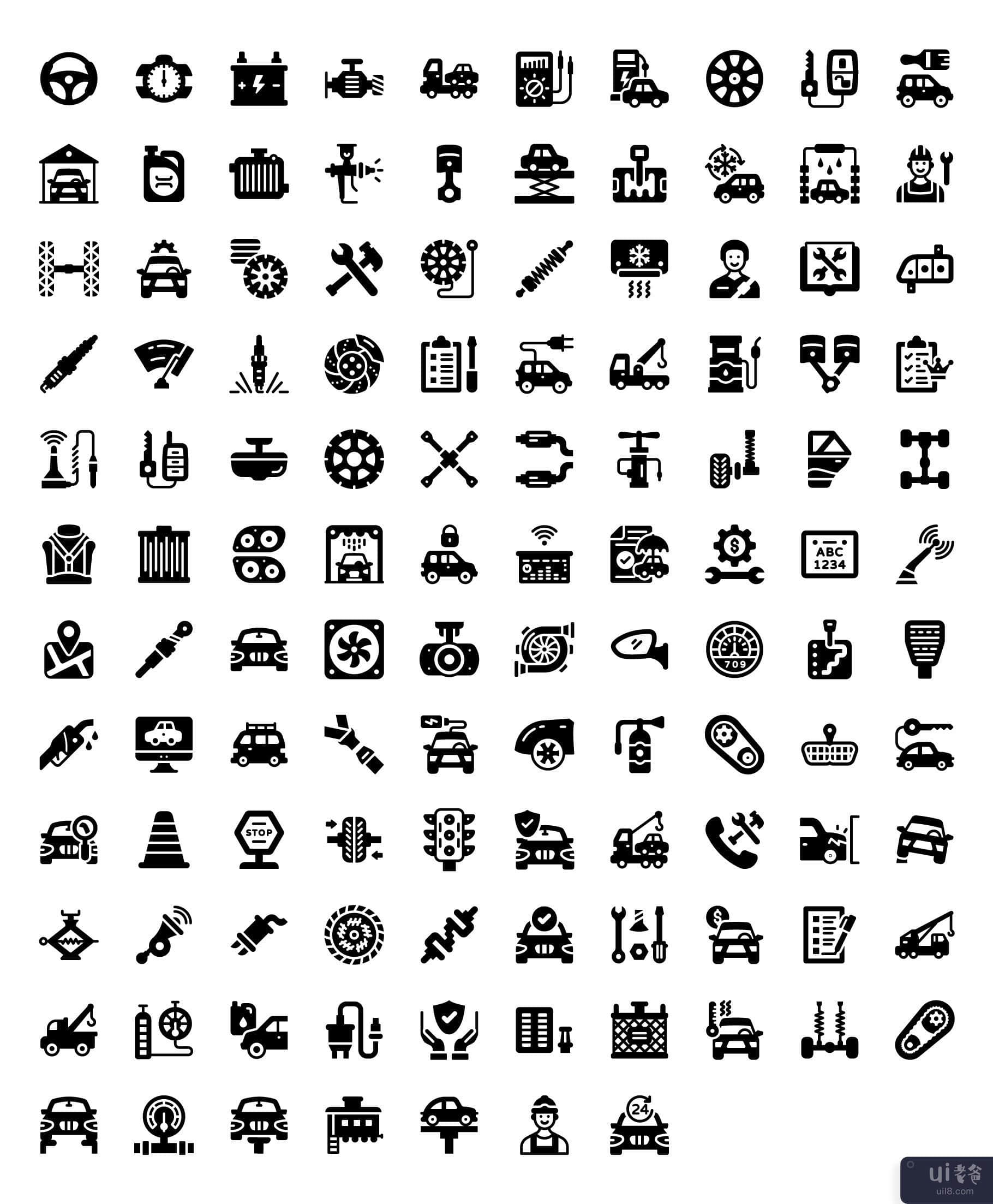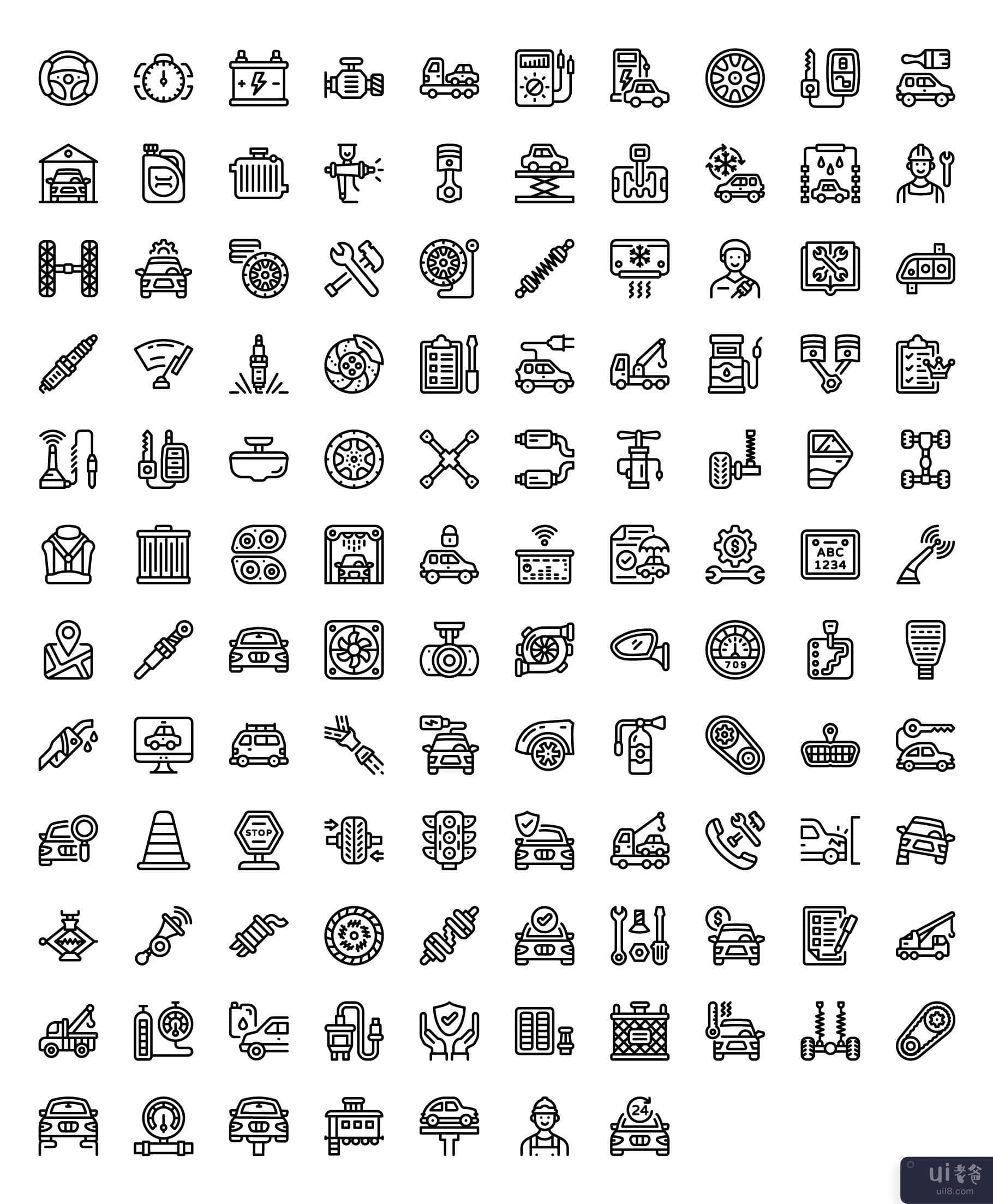 汽车维修线性图标包(Car Repair Linear Icons Pack)