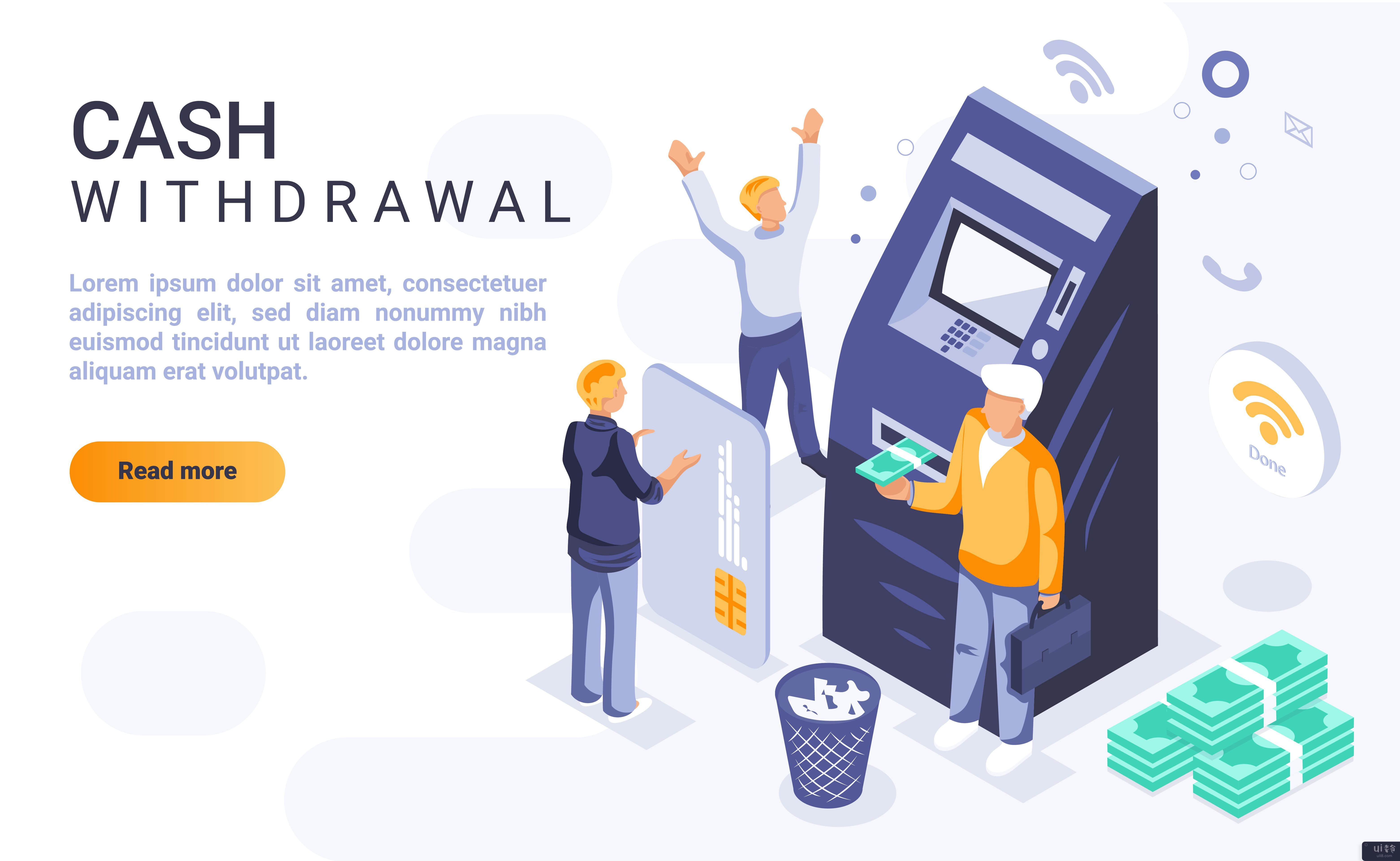 现金提款等距页眉平面概念(Cash Withdrawal Isometric Header Flat Concept)